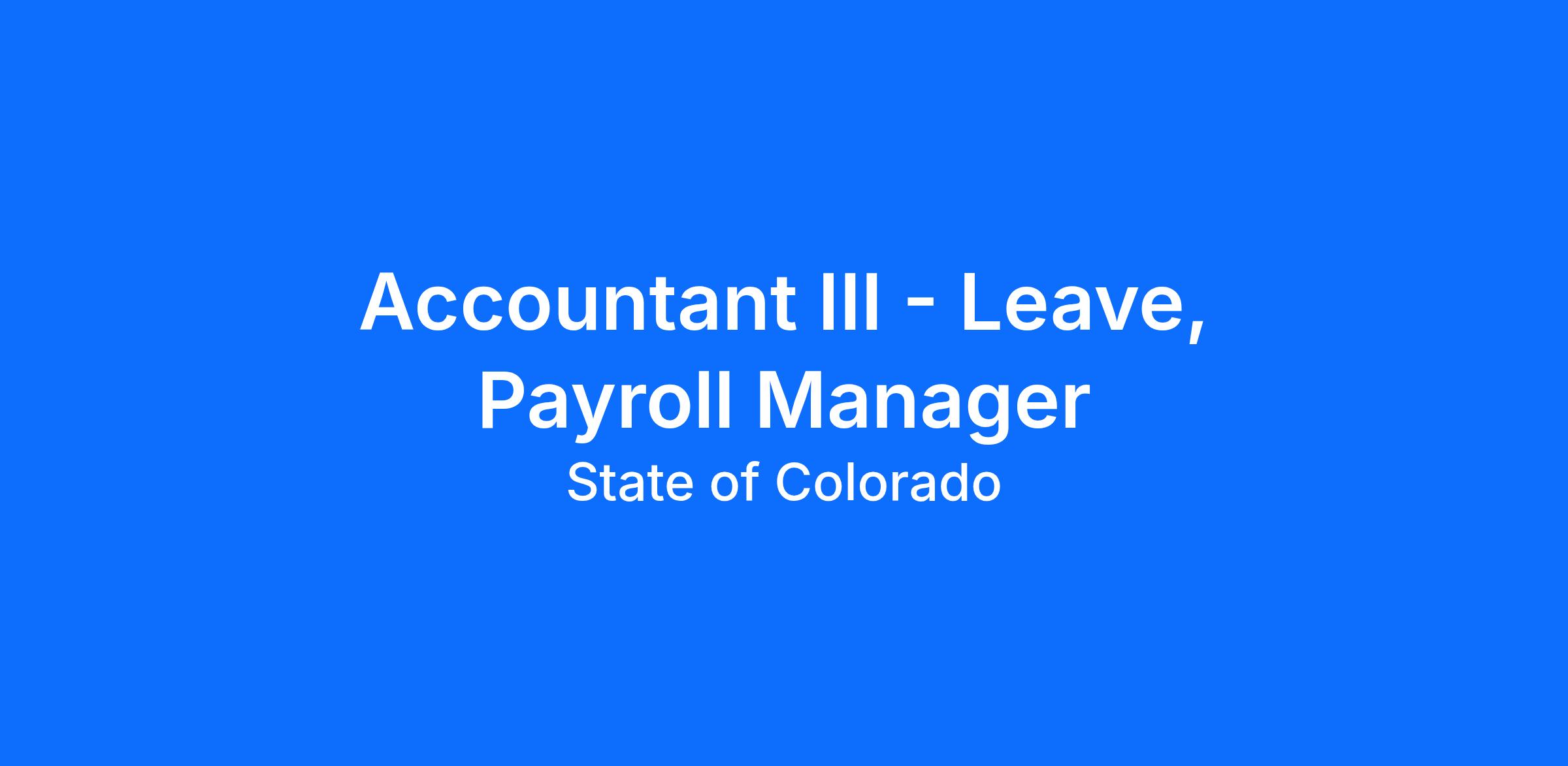 Serves as a back up to the other CDHS Payroll Managers (Accountant III’s). and CDHS Payroll Administrator