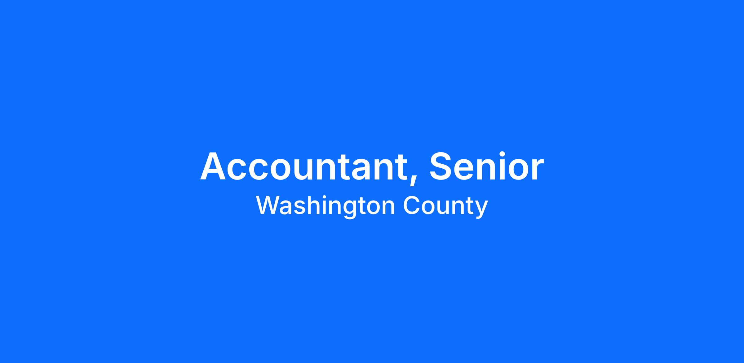 The Accountant, Senior serves as a subject matter expert, providing support, training and expertise to other accounting staff within the department and across the organization. Washington County Community Services values your experiences, perspectives, and unique identity. We are committed to building and sustaining an equitable and inclusive work environment where differences are valued and accepted. We believe diversity benefits and enriches our work and helps us to effectively deliver services to our employees and communities.