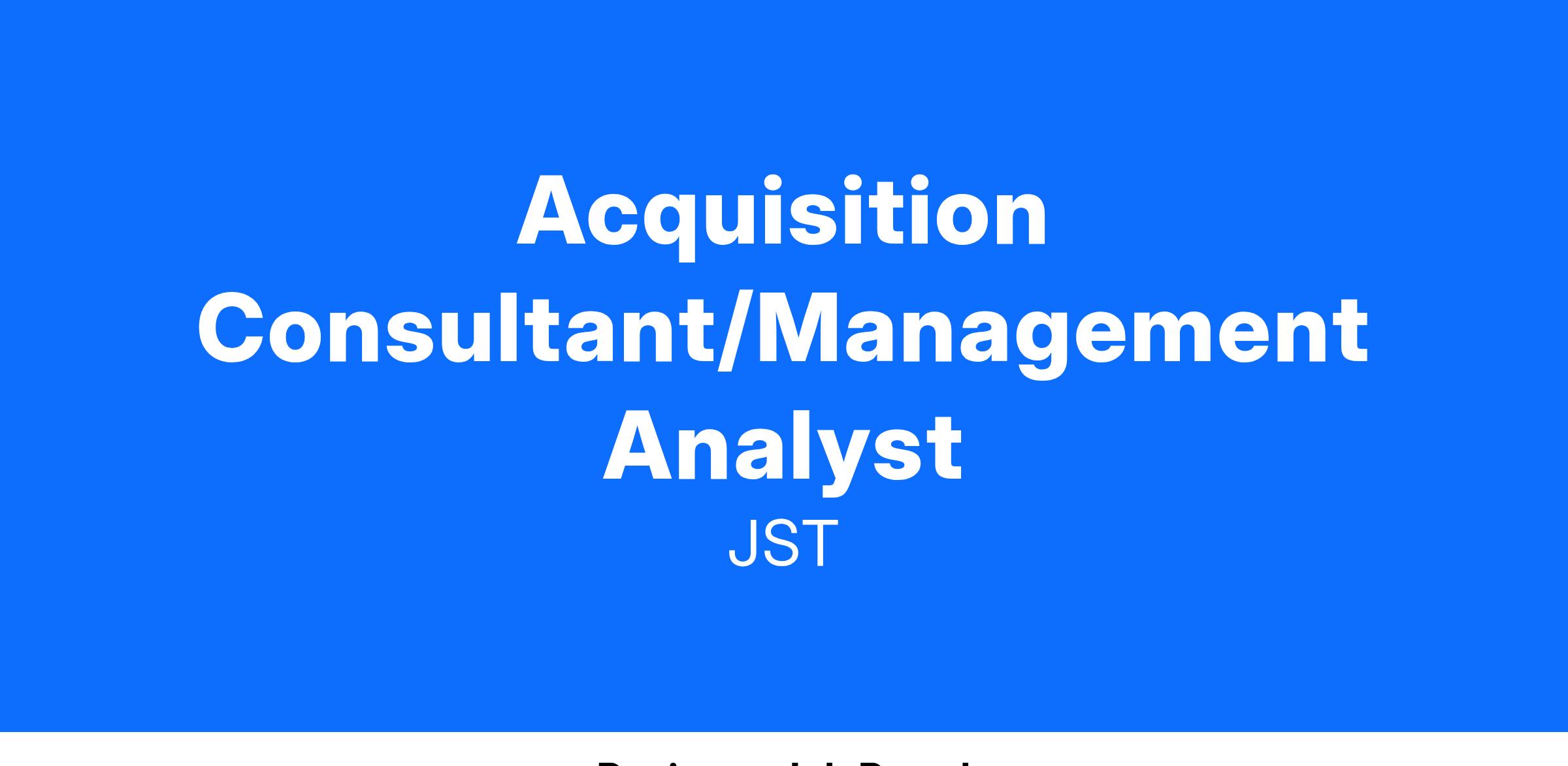 Acquisition Consultant/Management Analyst