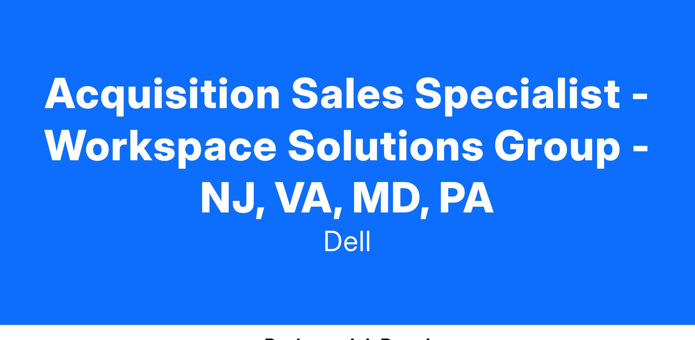 Acquisition Sales Specialist - Workspace Solutions Group - NJ, VA, MD, PA