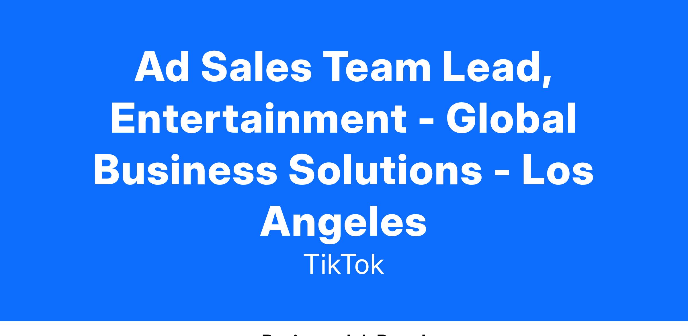 Ad Sales Team Lead, Entertainment - Global Business Solutions - Los Angeles