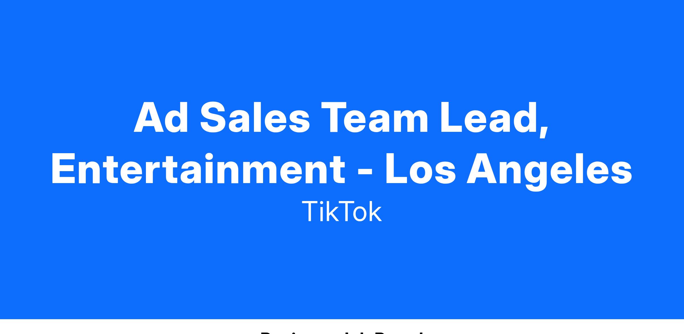 Ad Sales Team Lead, Entertainment - Los Angeles