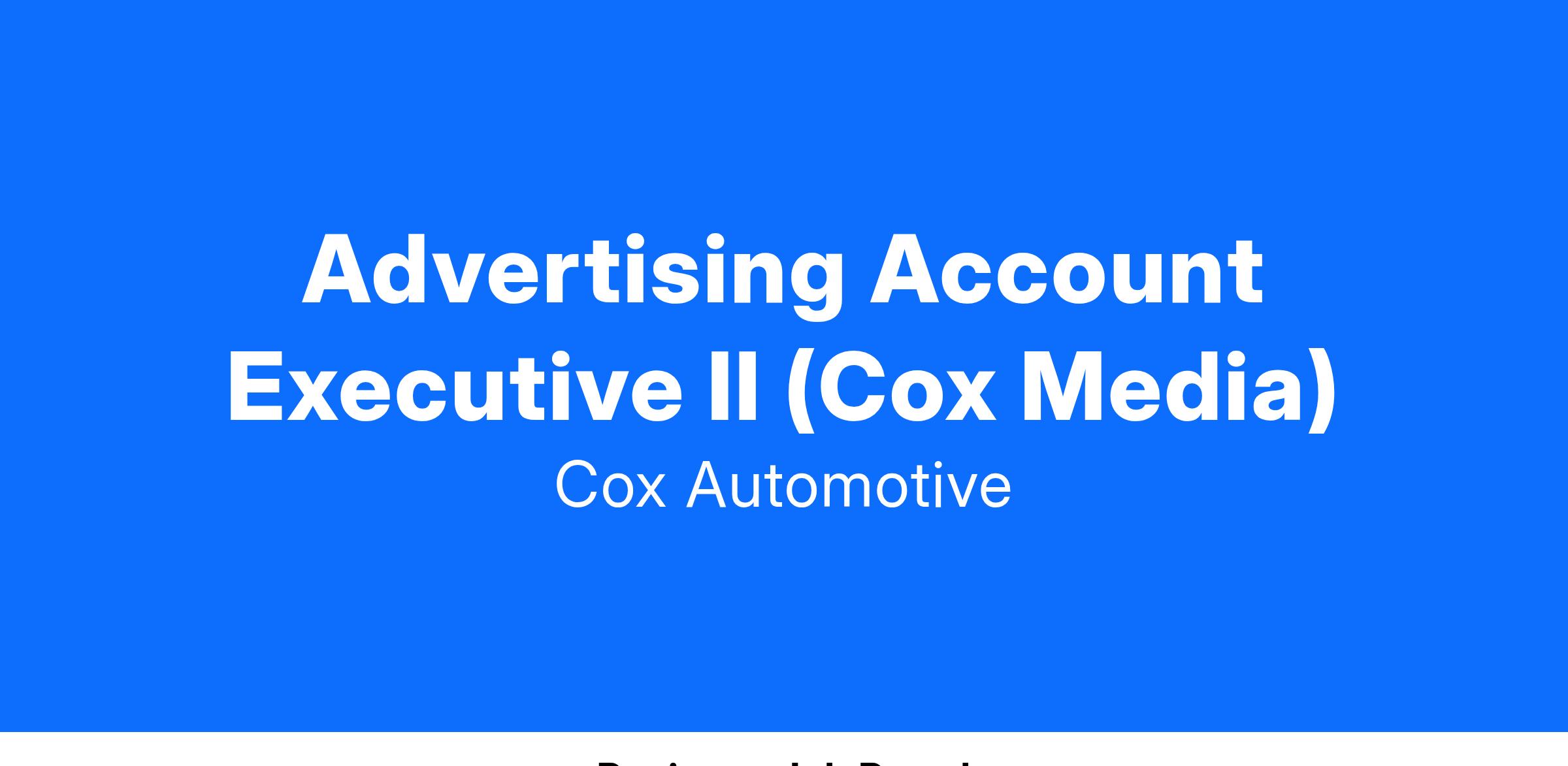 2+years of cable, broadcast, advertising sales/support or marketing experience
