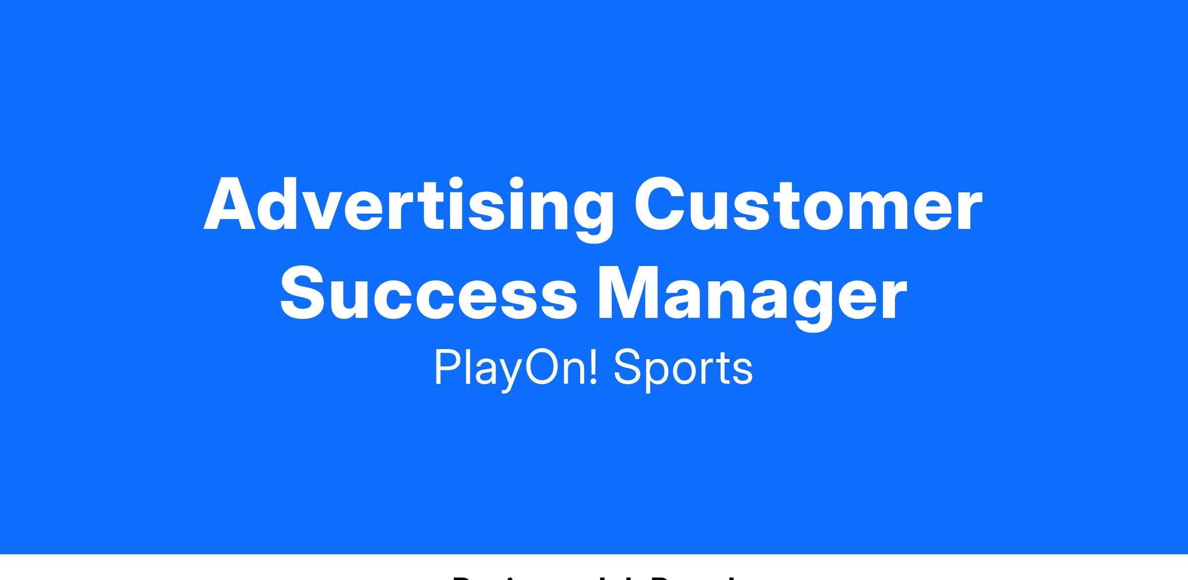 PlayOn! Sports is looking for actively looking to add an Advertising Customer Success Manager to our growing division. We are focused on our vision of becoming the go-to digital platform for high school sports. Your contributions will be made by fostering trusted relationships with our business sponsors of local high schools across the country.
