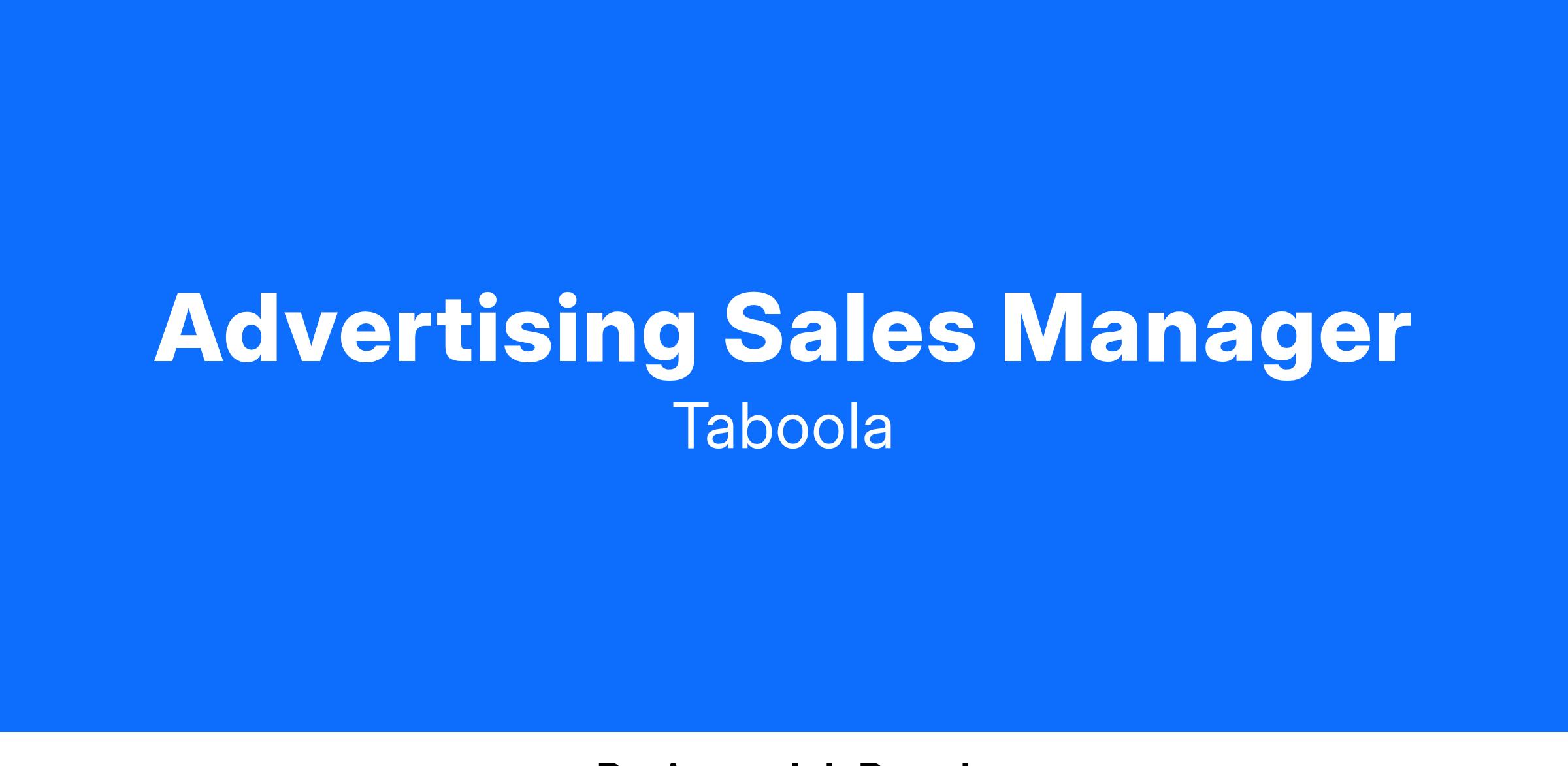 As a fast-moving technology company, no 2 days will ever be the same at Taboola. As an Advertising Sales Manager you will: