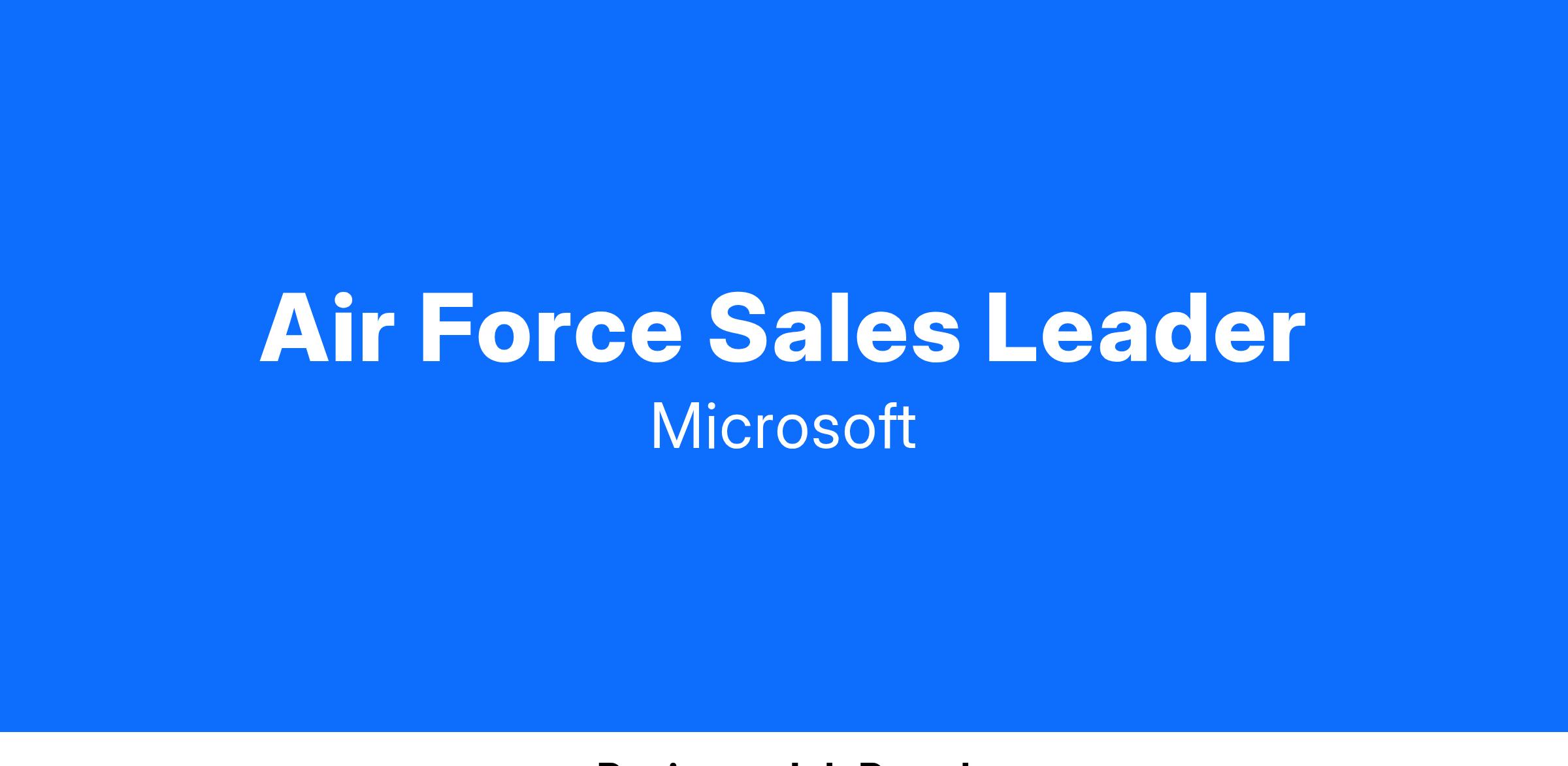 We are looking to hire a Air Force Sales Leader to join Microsoft Federal.