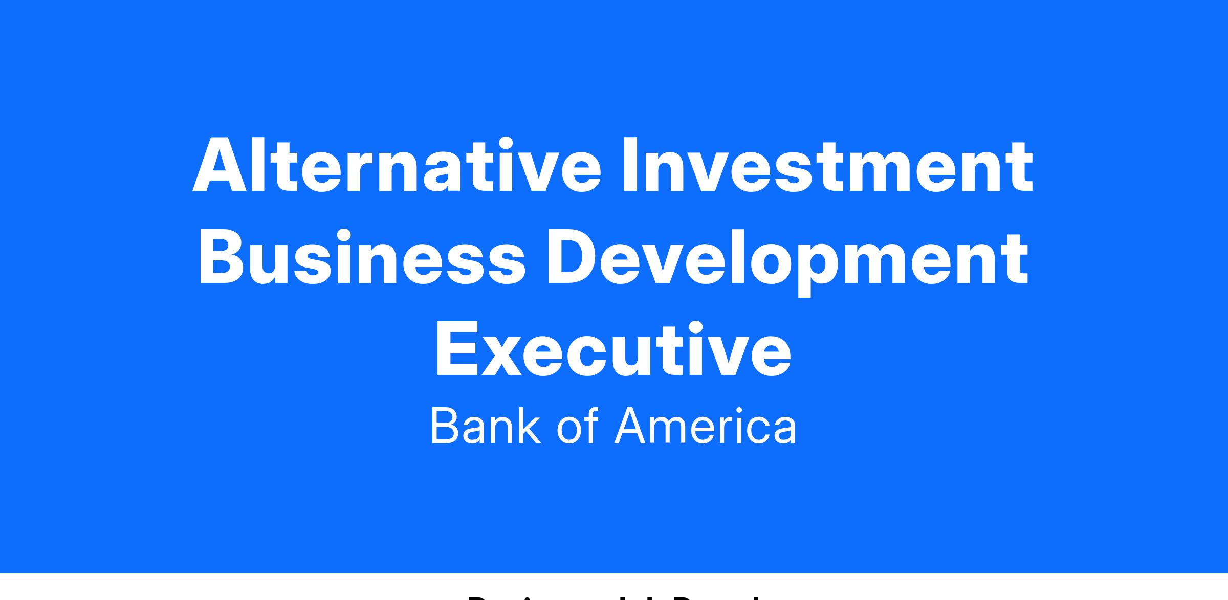 The Alternatives Investments team is positioned within the broader Investment Solution Group (ISG) organization supporting Wealth Management. The team is responsible for sourcing and managing product selection and investment experience across alternative investments such as hedge funds, managed futures funds, private equity funds, and non-traded real estate investment trusts (REITs). The products supported by the team are offered to suitable private clients across both the Merrill and BofA Private Bank distribution channels through both Financial Advisors (FAs) and Portfolio Managers (PMs).