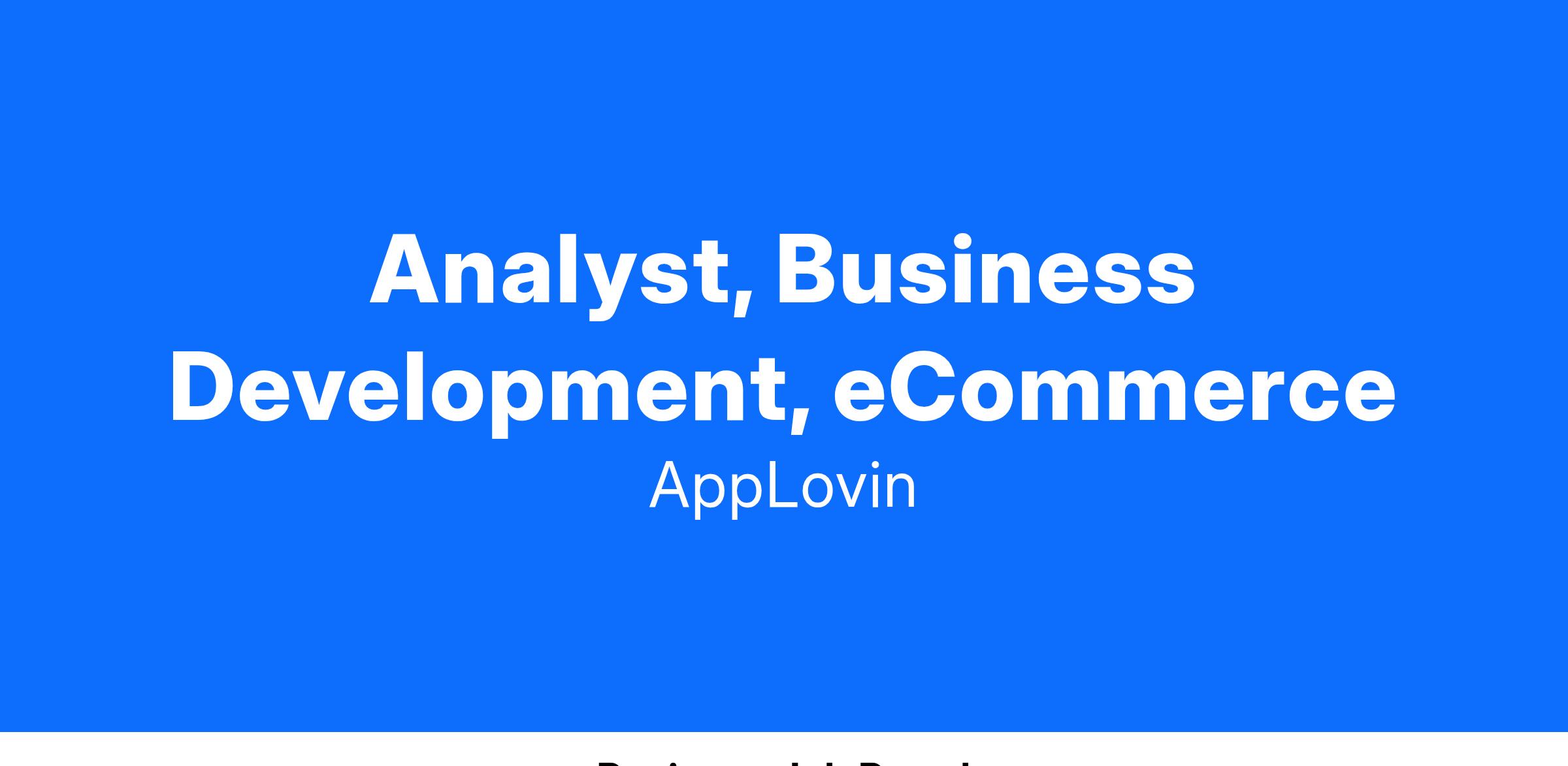 AppLovin’s eCommerce team helps brands convert new and repeat shoppers at scale through our industry-leading network of in-app advertising supply. We are seeking a driven and results-focused Analyst to join our fast-paced and expanding eCommerce Business Development team. In this role, you will partner with eCommerce brands to leverage AppLovin’s marketing platform, helping them achieve measurable business growth. You will also collaborate directly with AppLovin leadership and industry experts to drive our new eCommerce advertising initiative forward.