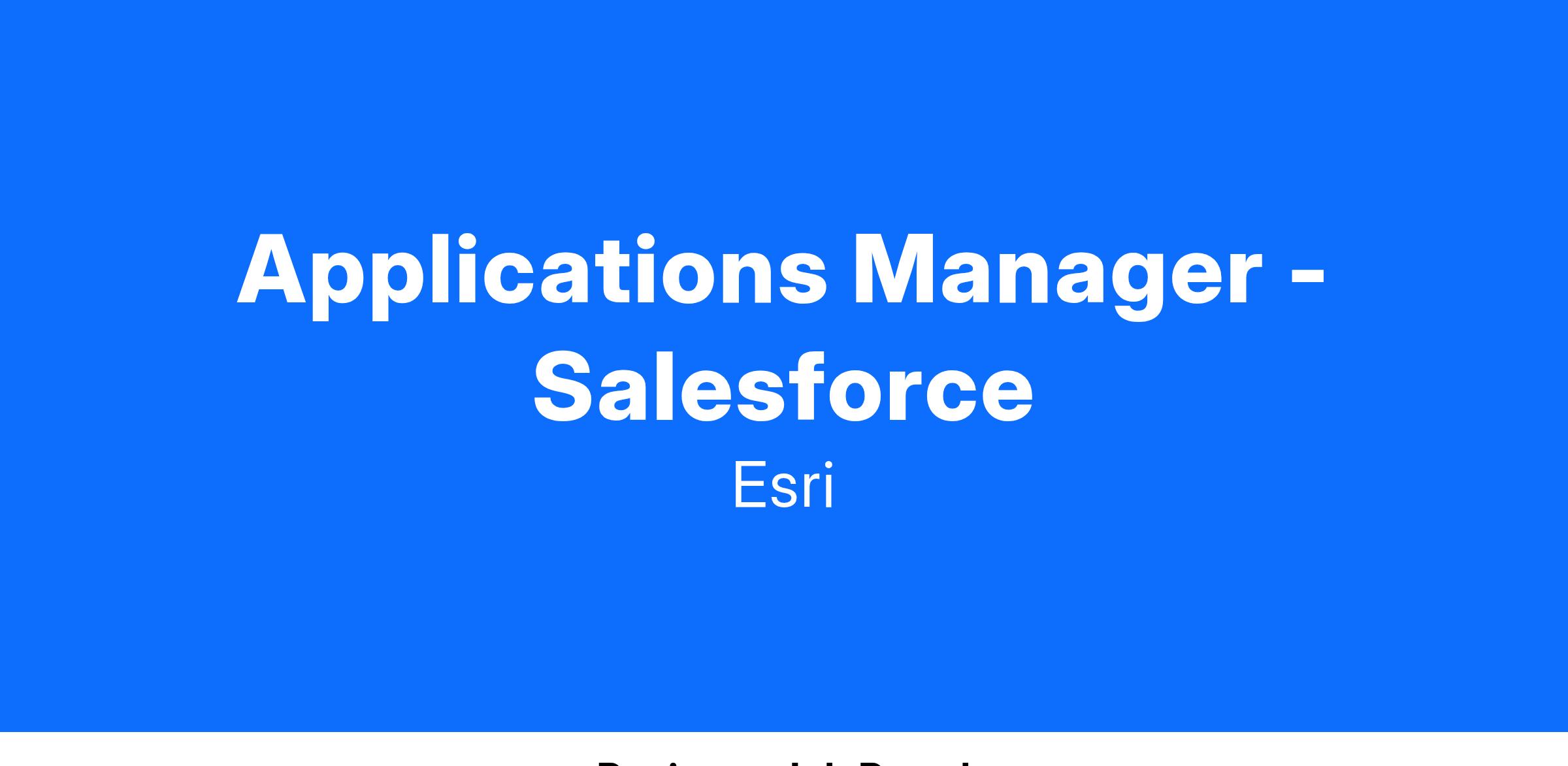 Bring your energy and technical expertise, leadership experience, and passion for transformative projects to manage projects and applications on the Salesforce platform. Join our team of applications managers to support Esri’s exciting global mission.
