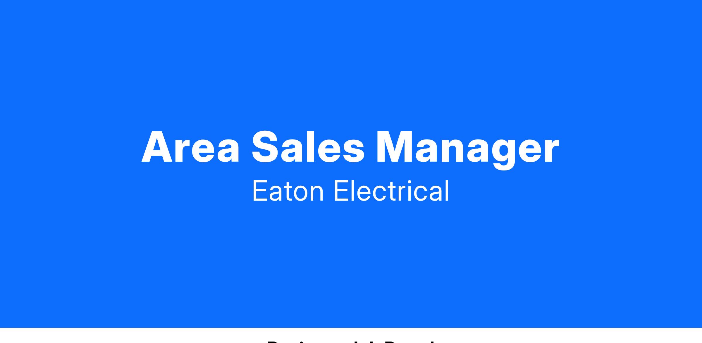 Eaton's North American Sales Division is currently seeking an Area Sales Manager to join our team. This position is part of our North America Electrical Sales team and will be based in our Tukwila, WA location. Position Overview: The Sales Manager will manage a customer base, sales resources, products and channels to market to achieve planned results for the district. This individual will provide leadership and development to a sales team consisting of sales professionals, sales reps and the distributor channel. Expected results include but are not limited to growth in sales and market share, channel development as well as developing talent within the district.