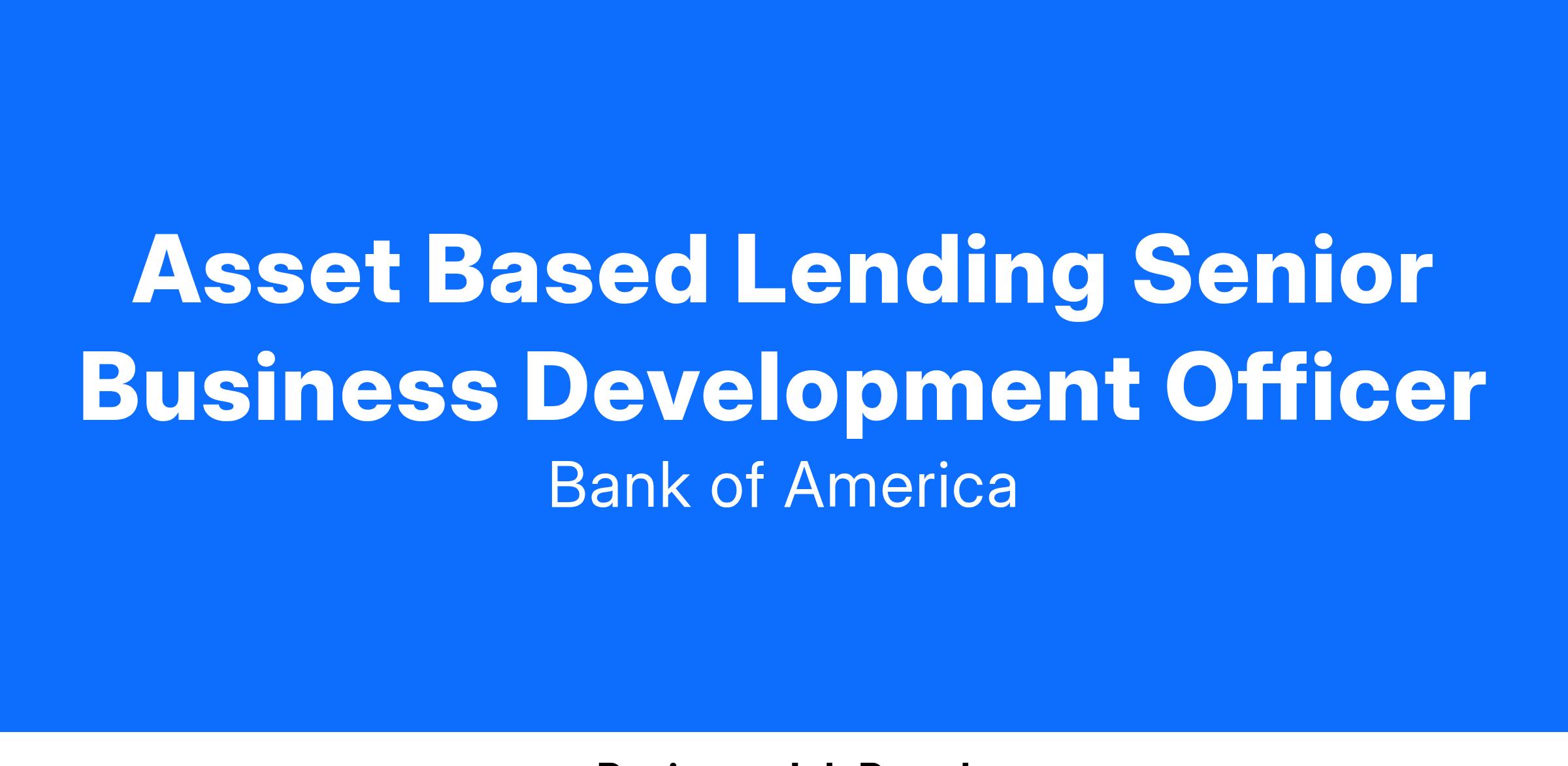 Bank of American Business Capital (“BABC”), the market leading provider of asset-based lending (“ABL”) solutions, is seeking a Senior Business Development Officer (“BDO”) to deliver creative senior secured credit facilities to large corporate, middle market and lower middle market borrowers in support of their organic and/or M&A growth, recapitalizations and refinancing of existing debt. Based in either Iselin, NJ, Philadelphia or New York City, the BDO will cover prospective ABL clients and COIs in New Jersey, Northern Delaware and Eastern Pennsylvania.