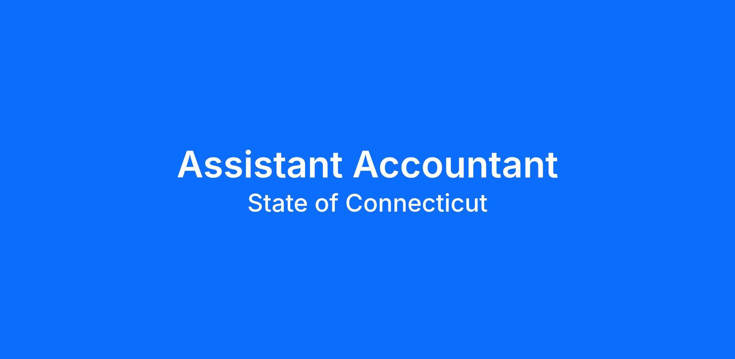 This image shows a career progression pathway within the State of Connecticut: starting with Assistant Accountant (highlighted to indicate the current opening), advancing to Accountant, Associate Accountant, Supervising Accountant, and ending with Many more opportunities available!