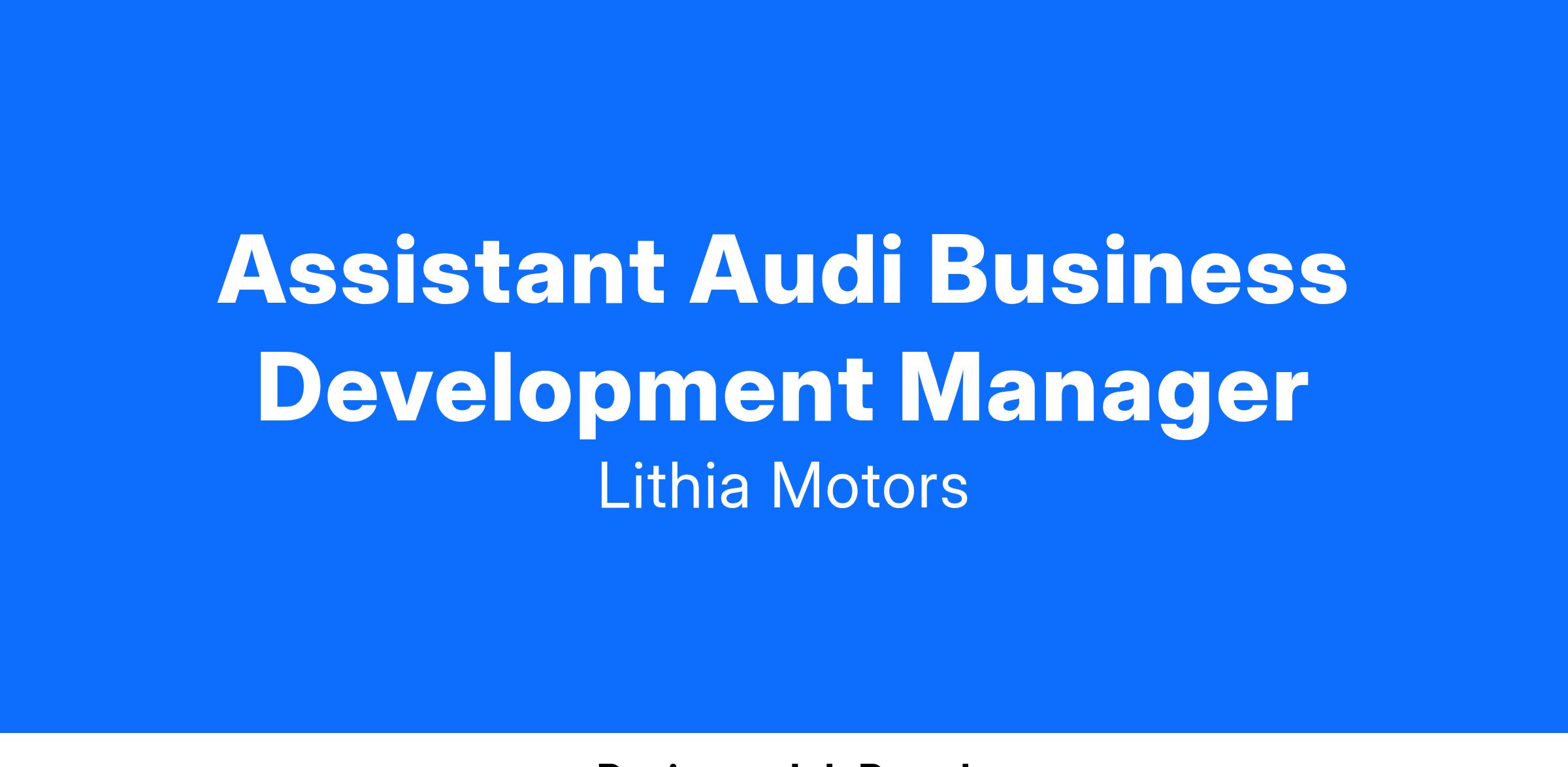 The Lithia Business Development Center Assistant Manager assists in managing the Business Development Administrators in a store.