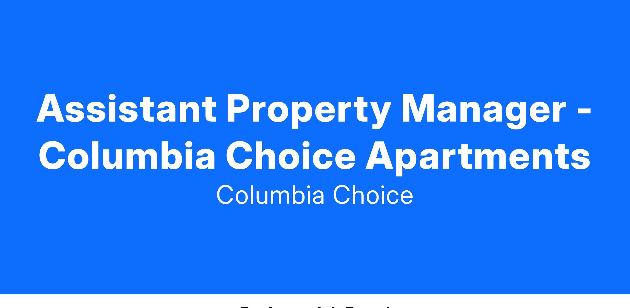 π’ Join our dynamic team as an Assistant Property Manager at Columbia Choice! π³π’