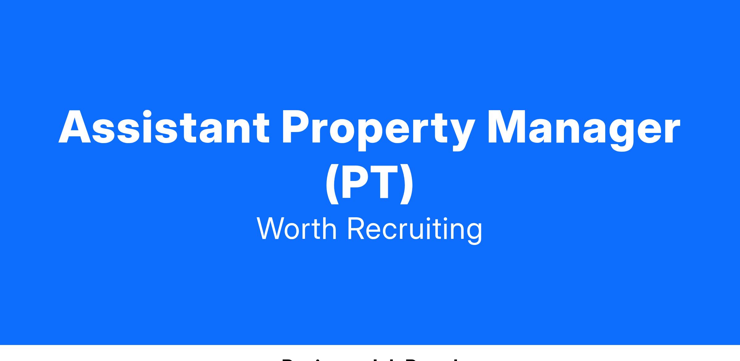 Benefits: With this Part Time Assistant Property Manager role include: