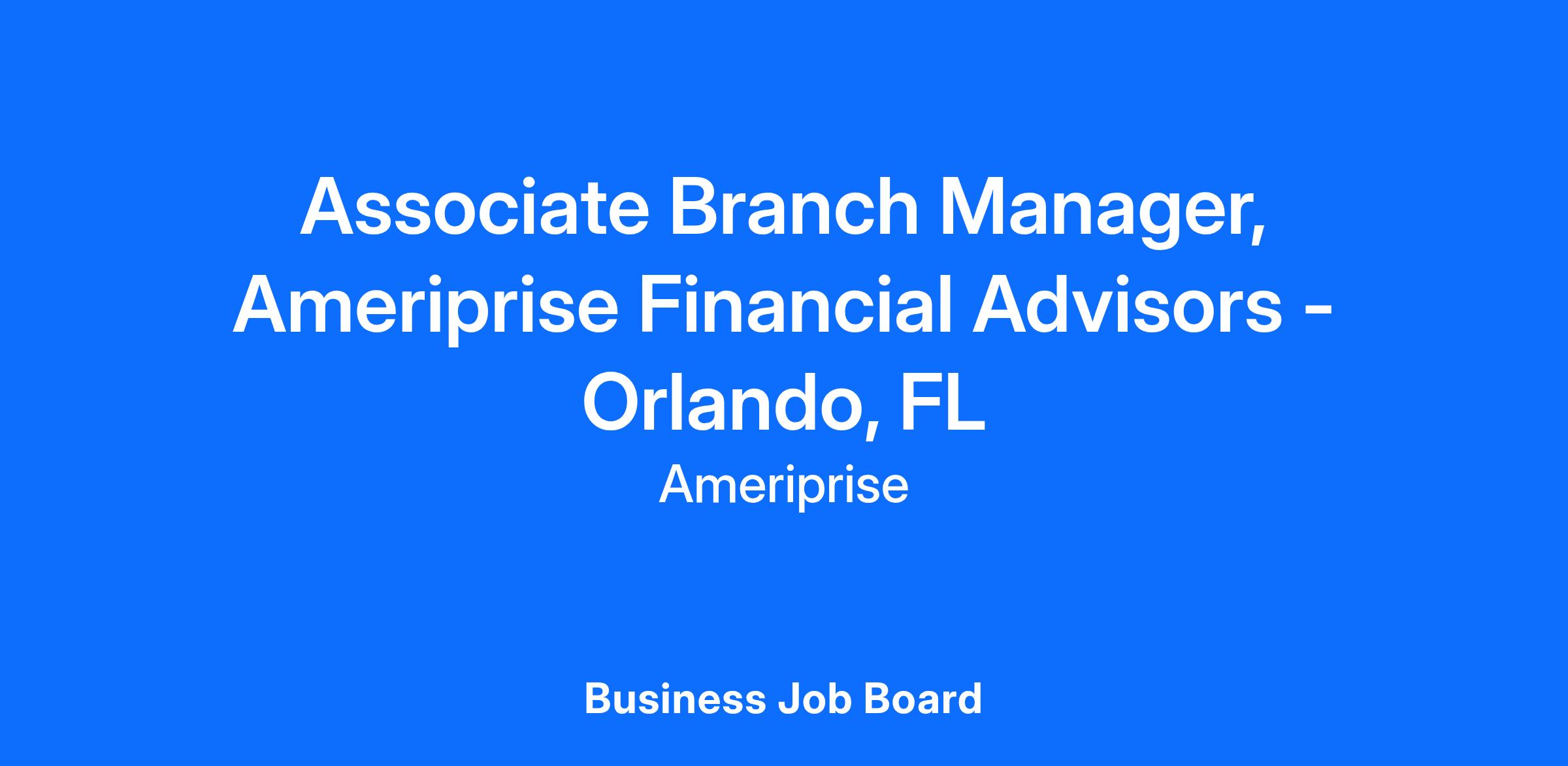 Associate Branch Manager, Ameriprise Financial Advisors - Orlando, FL