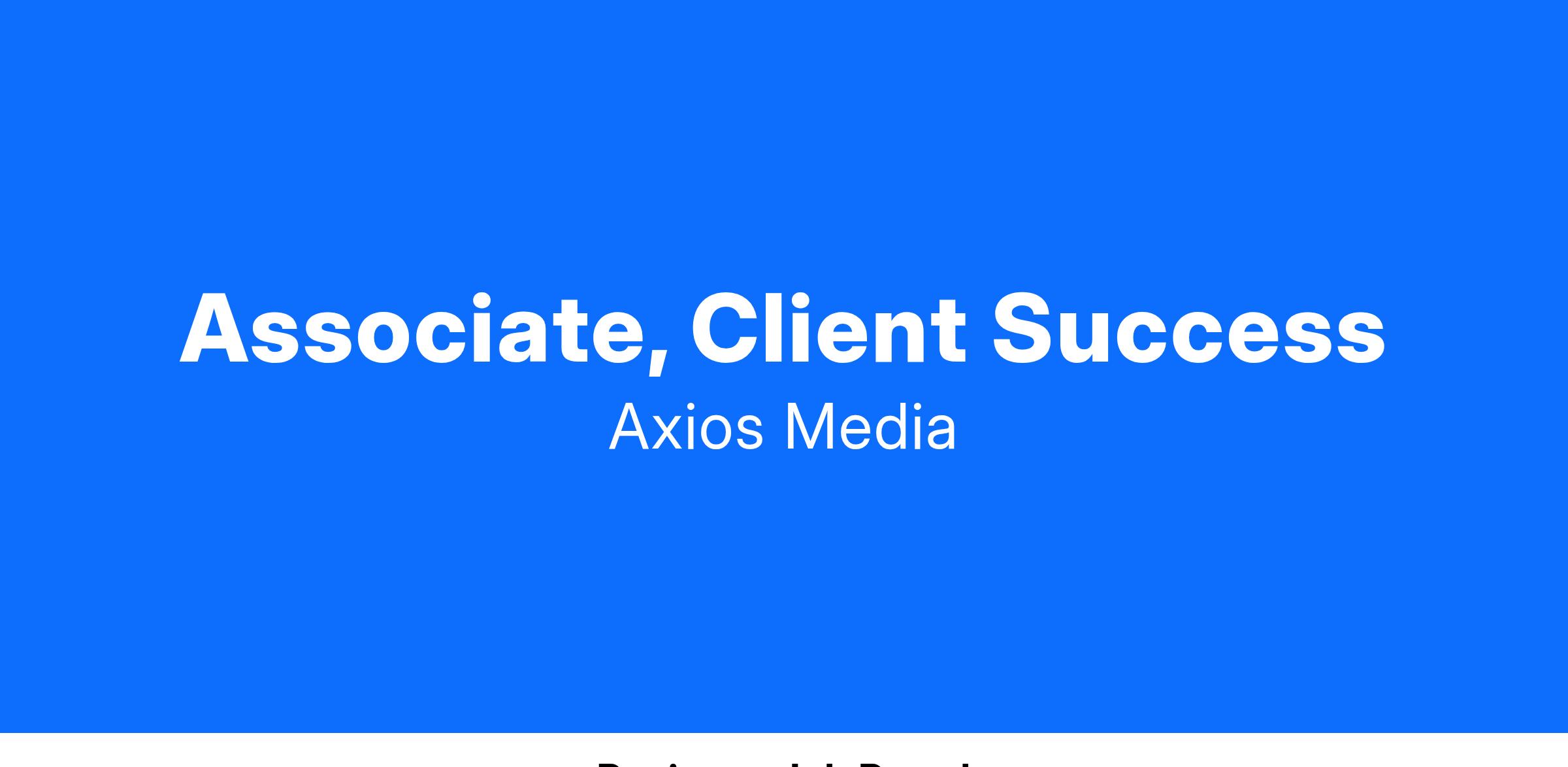 The big picture: Axios is a media company dedicated to providing trustworthy, award-winning news content in an audience-first format. We are hiring an Associate of Client Success to support our Local advertising team!