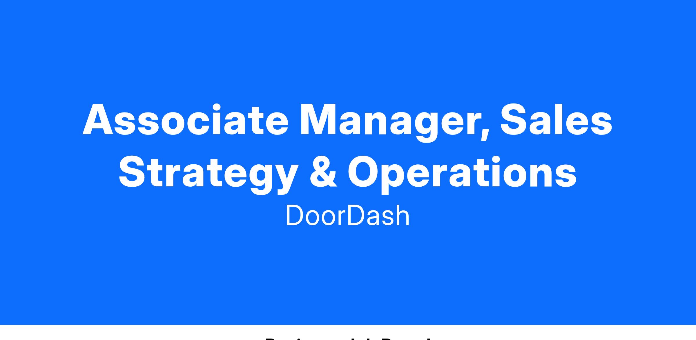 This team enables DoorDash to scale its core business and execute a go-to-market strategy to acquire every restaurant that customers want on our platform. We are looking for a Sales Strategy & Operations Associate Manager to evolve and scale our GTM strategy. This includes developing go-to-market playbooks, revenue optimization, strategic plans to enhance productivity, process redesign, product roadmap and launches, resource allocation and pipeline analytics. You will sit at the center of our revenue generation engine - this will require prioritization and data-driven insights to ensure our teams are working against the right goals and have the tools needed to achieve them.
