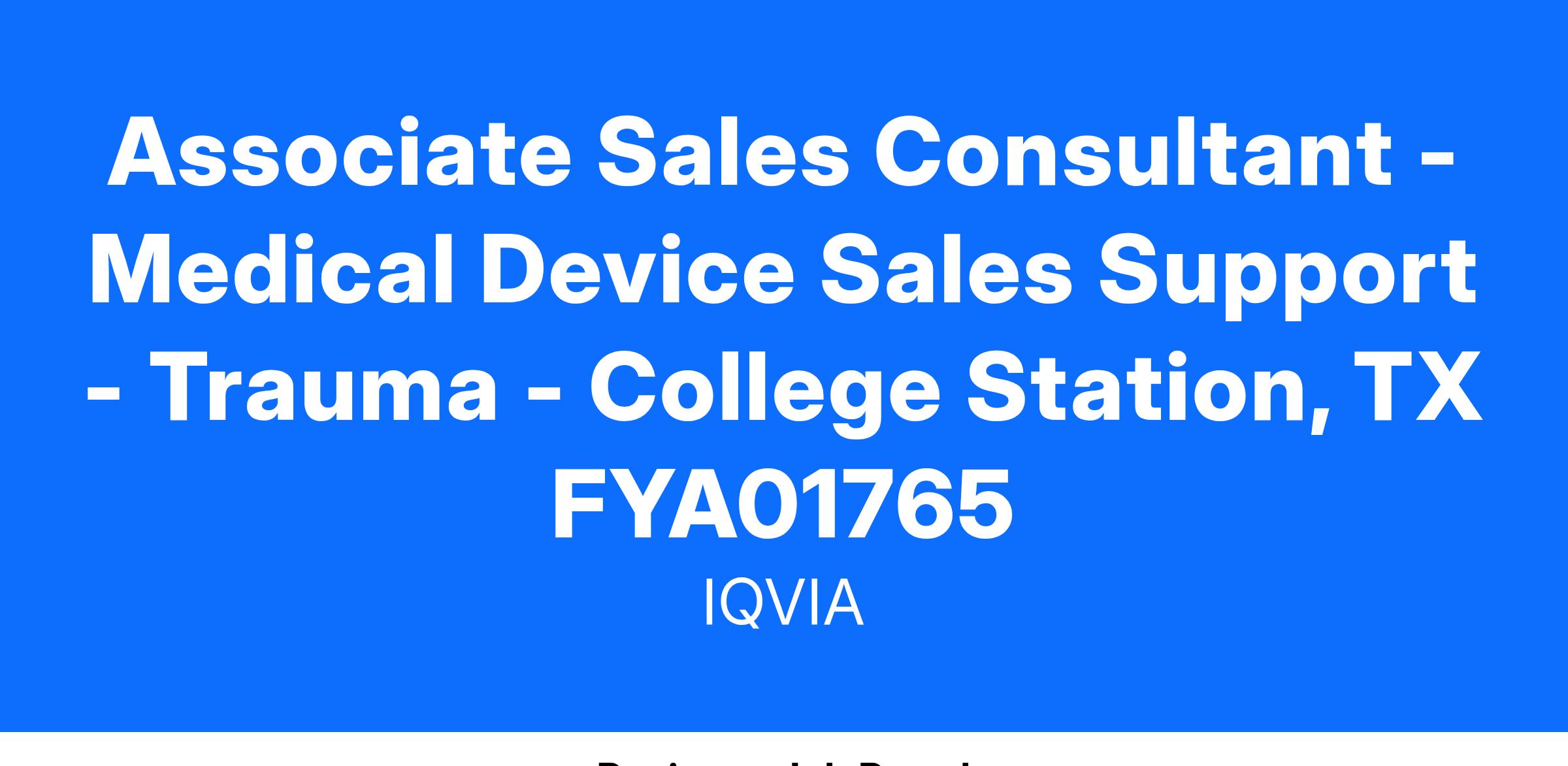 Associate Sales Consultant - Medical Device Sales Support - Trauma - College Station, TX FYA01765