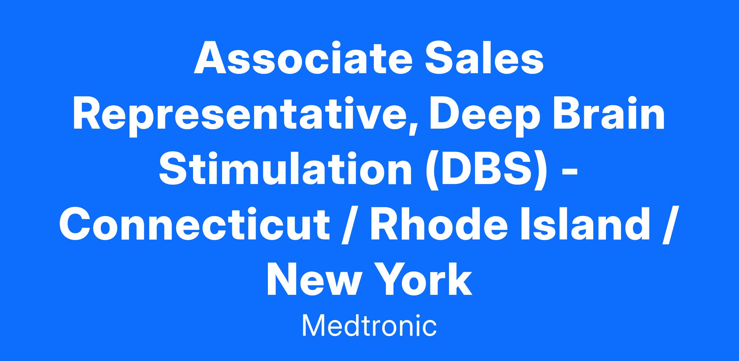 At Medtronic, the Associate Sales Representative, DBS is responsible for soliciting orders, selling Medtronic DBS products assigned and representing the company in accordance with its policies and in the area assigned; for maintaining awareness of local competitive conditions and for reporting back promptly to the district manager. This position will work in tandem with a DBS Sales Rep 2 and will have territory coverage responsibility and sales responsibility.