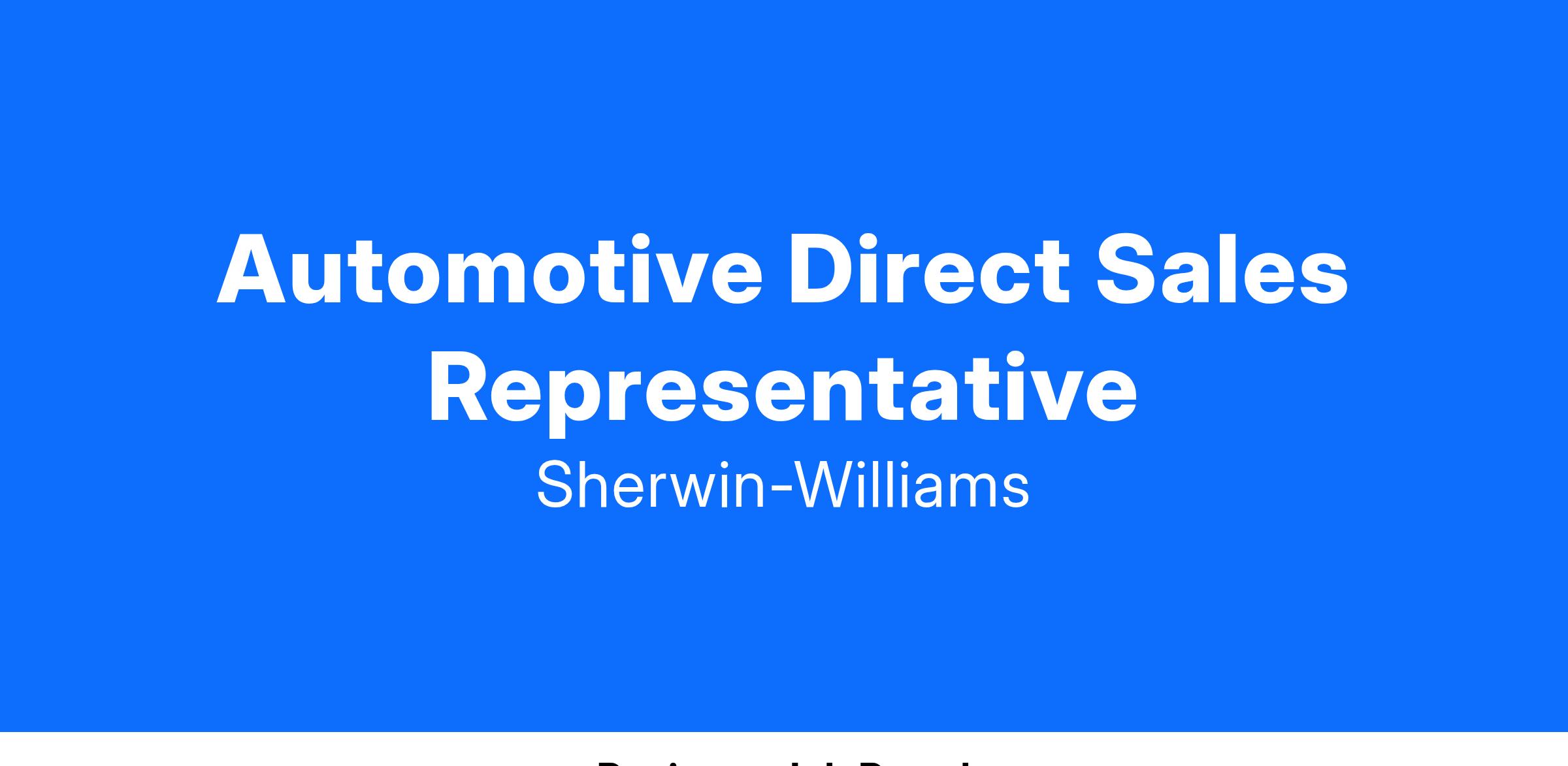 The Sales Representative is responsible for developing sales in a specific geographic territory. Duties include prospecting for new business and making calls to existing and new customers for the purpose of selling Automotive Finishes products, which include Sherwin-Williams labeled automotive paint and associated products. Typical accounts include automotive body shops, production, and fleet shops.