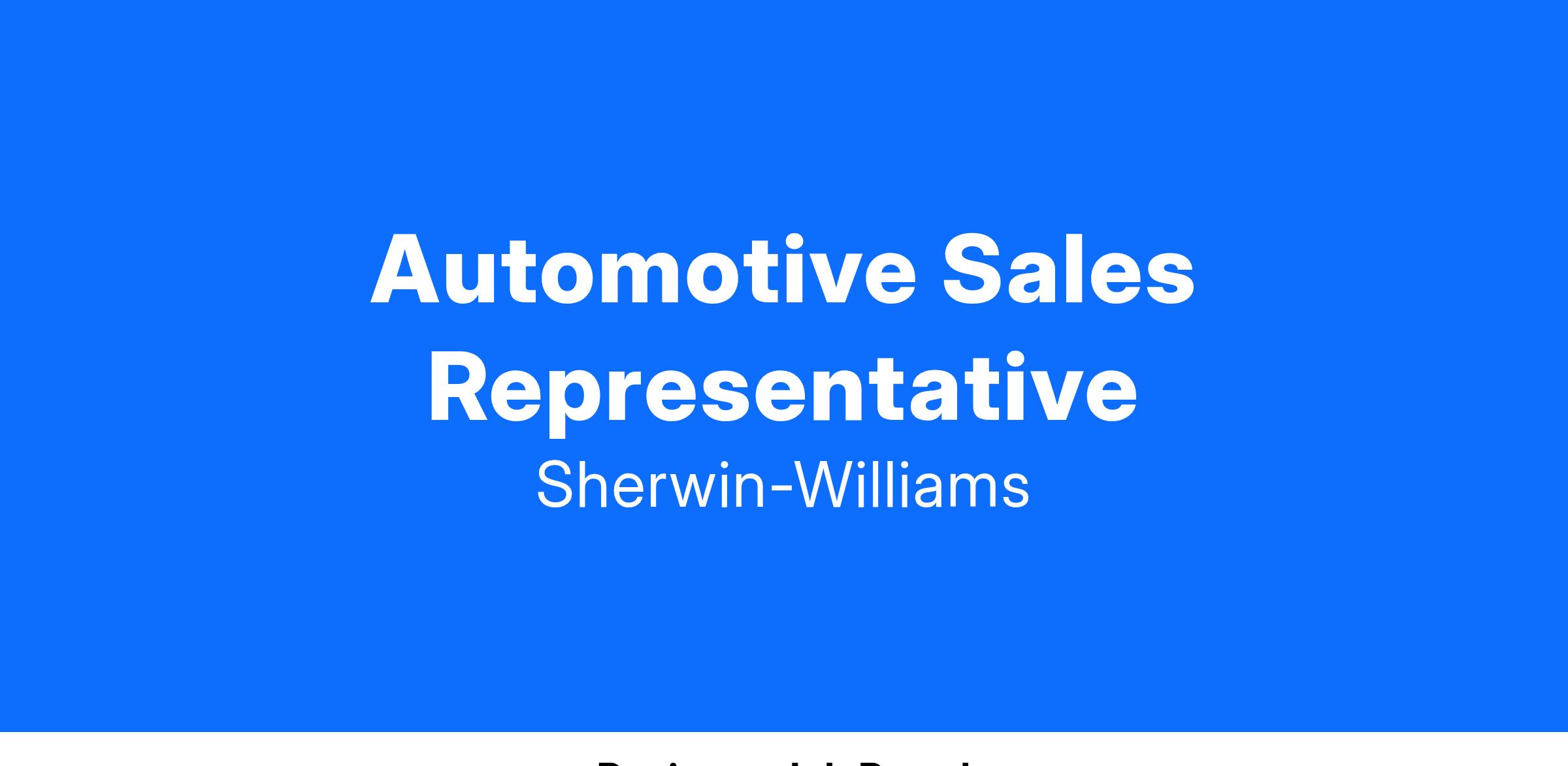 The Sales Representative is responsible for developing sales in a specific geographic territory. Duties include prospecting for new business and making calls to existing and new customers for the purpose of selling Automotive Finishes products, which include Sherwin-Williams labeled automotive paint and associated products. Typical accounts include automotive body shops, production, and fleet shops.