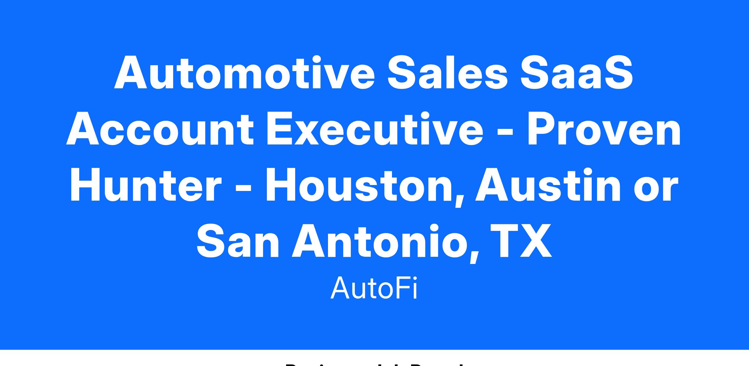 Join our dynamic sales team at AutoFi, where our continued success is fueling expansion. We're seeking a seasoned sales professional with a track record in Automotive SaaS to bolster our high-performing sales organization. As an Account Executive, you'll spearhead the acquisition of new dealership accounts across franchise and independent automotive dealerships within a multi-state territory, promoting AutoFi's cutting-edge Digital Platform that delivers both online and in-store solutions. The ideal candidate will leverage existing networks to cultivate a robust sales pipeline while demonstrating adeptness in cultivating new business relationships through strategic business development initiatives.