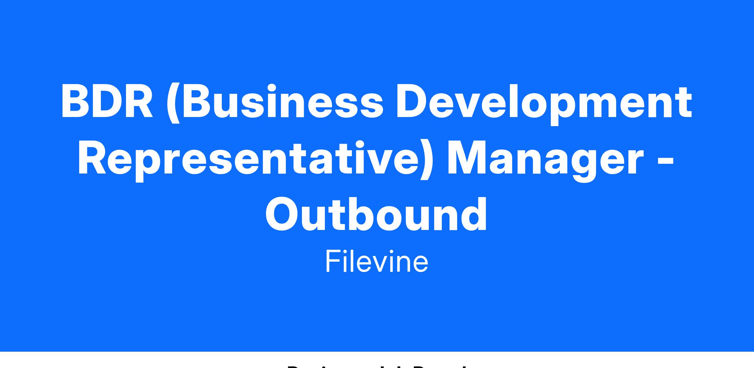 We’re seeking a Business Development Representative (BDR) Manager to lead and inspire our outbound BDR team. This leader will be instrumental in shaping Filevine’s future by developing a high-performing team that generates qualified opportunities from intent reports, cold calling, and events. The ideal candidate is not just a manager but a coach and mentor who thrives on developing talent—transforming BDRs into future Account Executives (AEs) at Filevine. You’ll collaborate with sales, marketing, and operations teams to drive Filevine’s growth by refining our outbound strategy and creating a thriving pipeline. If you’re passionate about building teams, empowering individuals, and driving results in a fast-paced, high-growth environment, this role is for you.