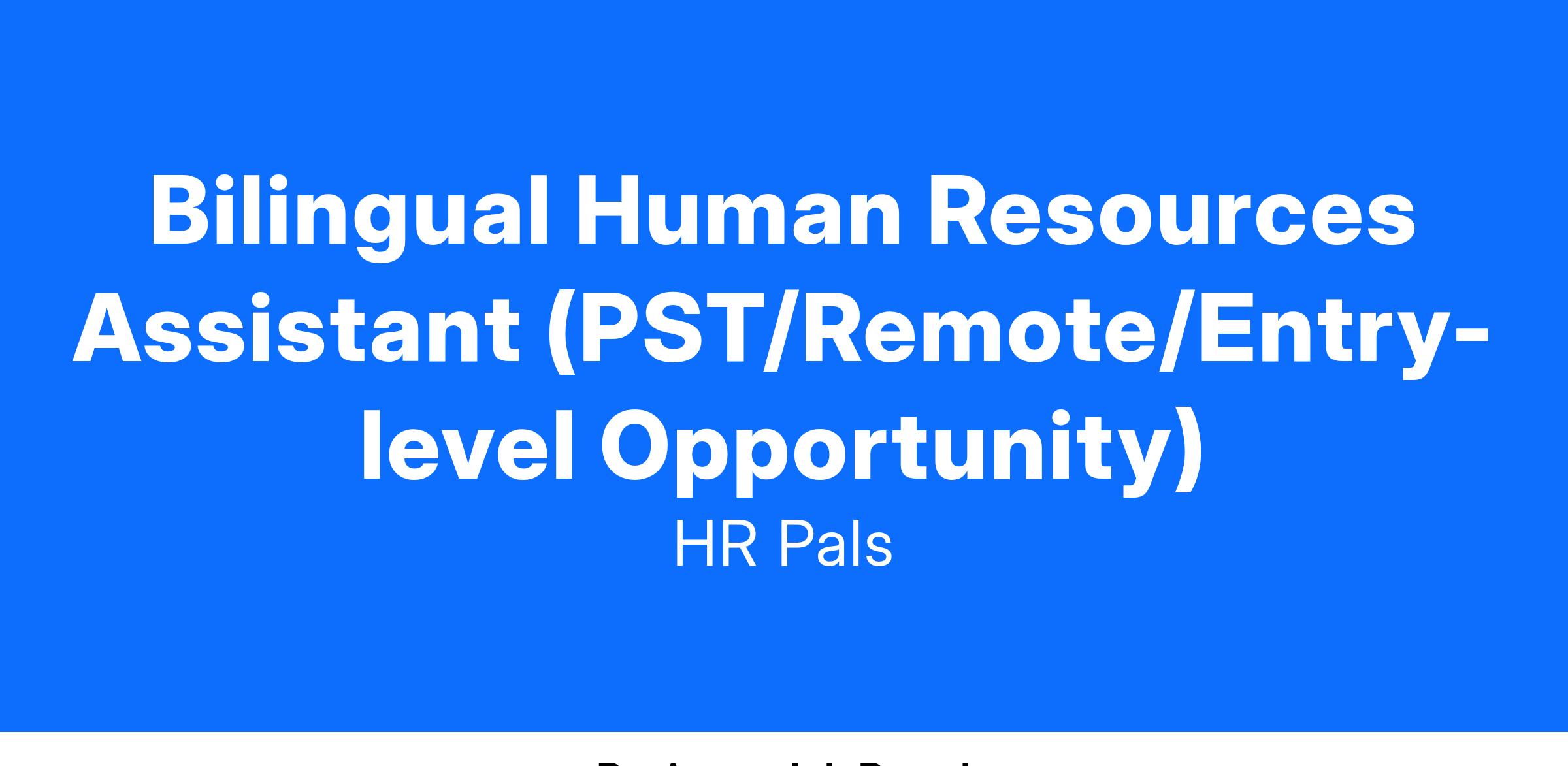 Bilingual Human Resources Assistant (PST/Remote/Entry-level Opportunity)