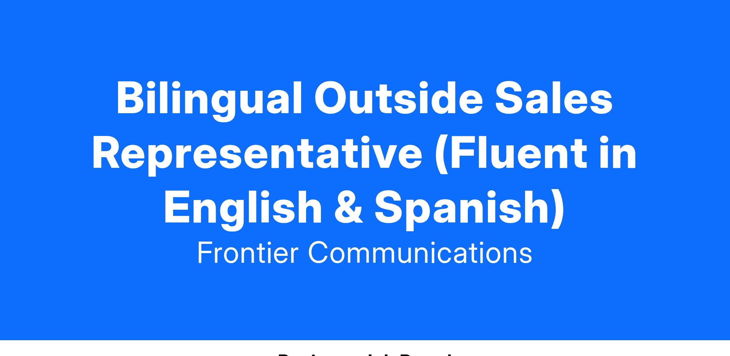 Bilingual Outside Sales Representative (Fluent in English & Spanish) - $5000 Sign-On Bonus
