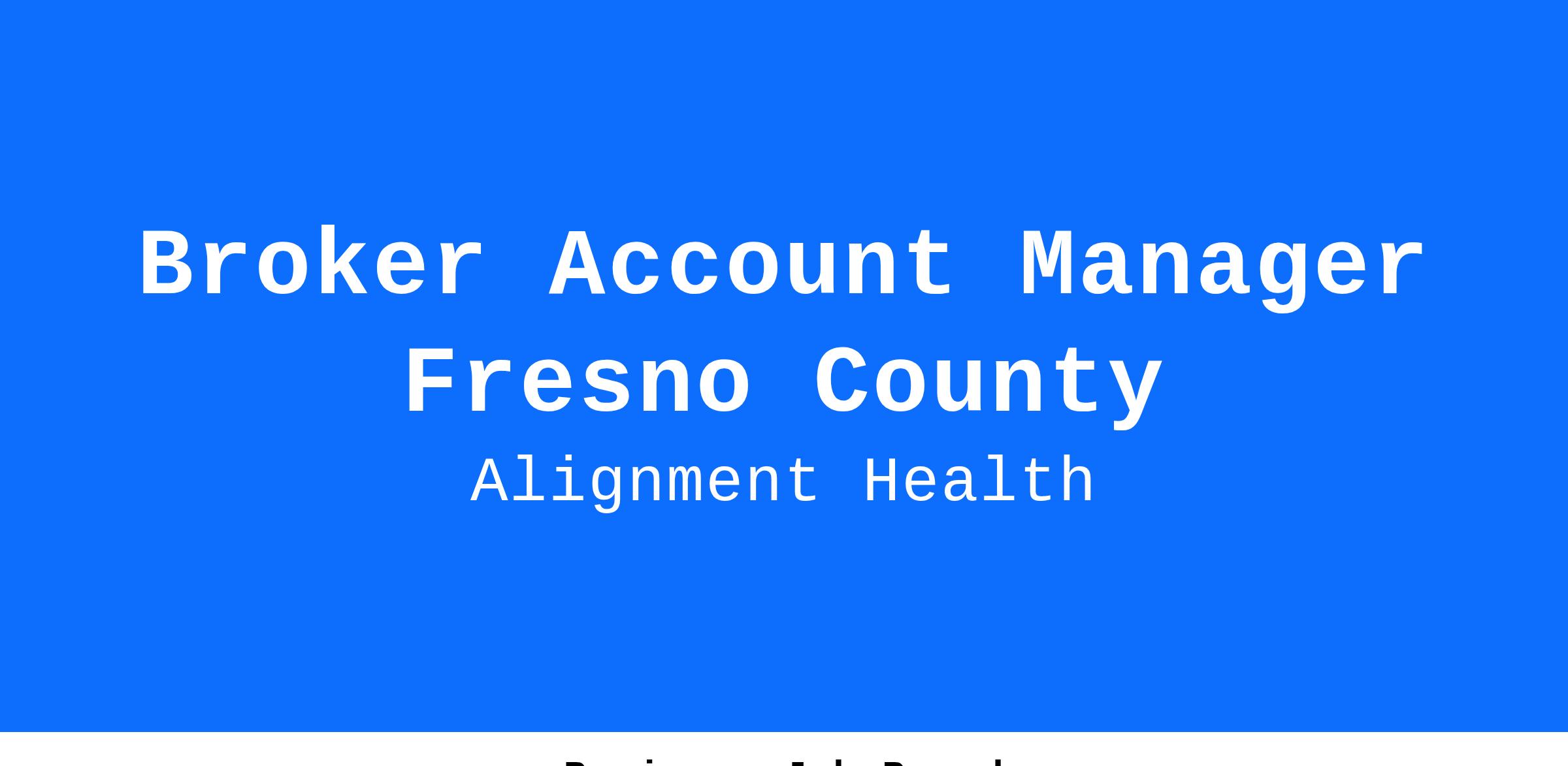 In overseeing the broker channel, the Broker Manager must live in or near Fresno County and will:
