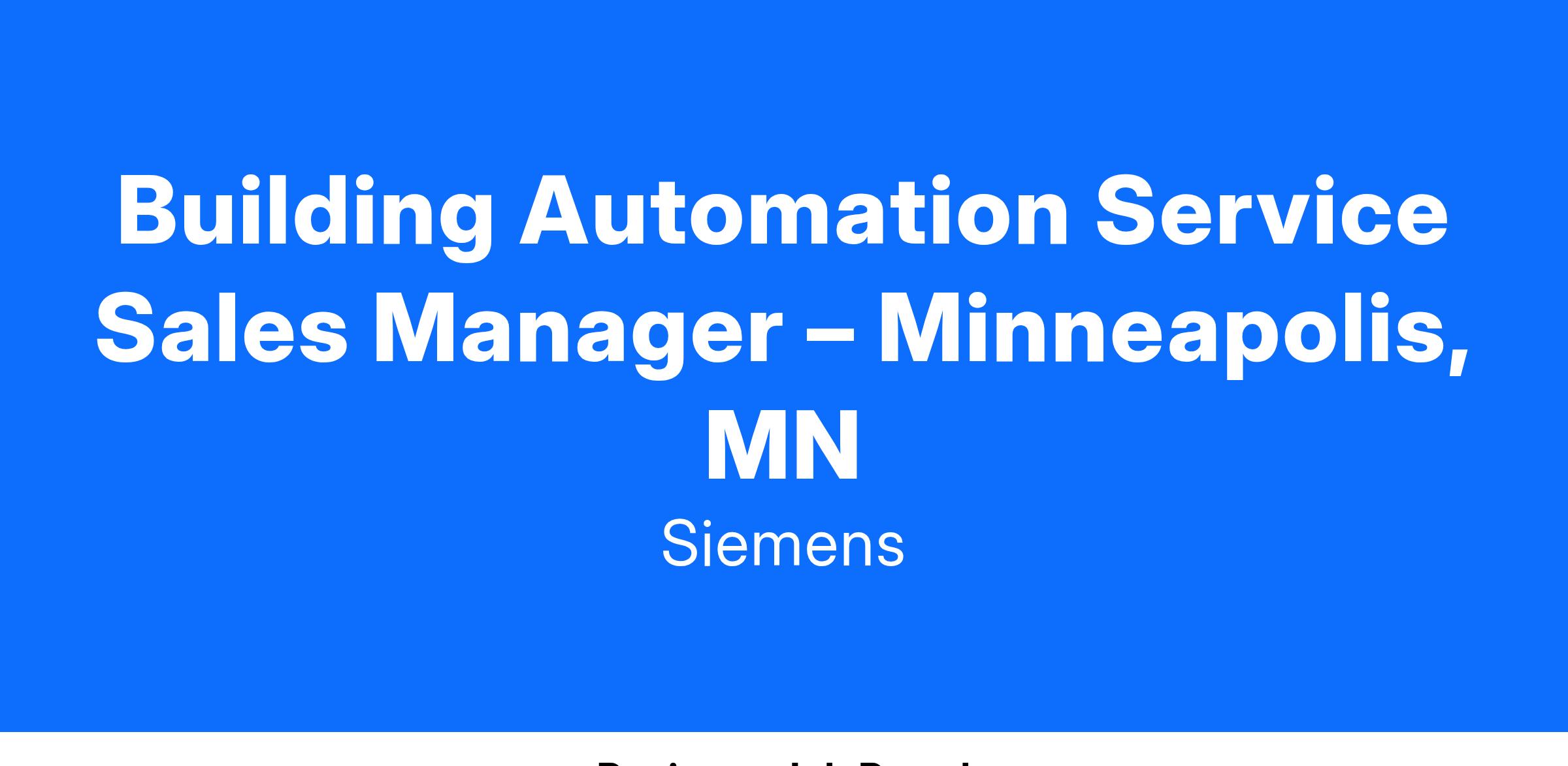 The Building Automation Service Sales Manager is committed to promoting Siemens strong market position for delivering smart building technology to help our customers create outstanding experiences for their customers. Why is this so important? Our Sales Managers lead a team responsible for transforming buildings to be digitally connected and controlled and with your strong leadership skills and passion for team building you’ll help find and hire top talent, develop employees, and promote long-term retention.