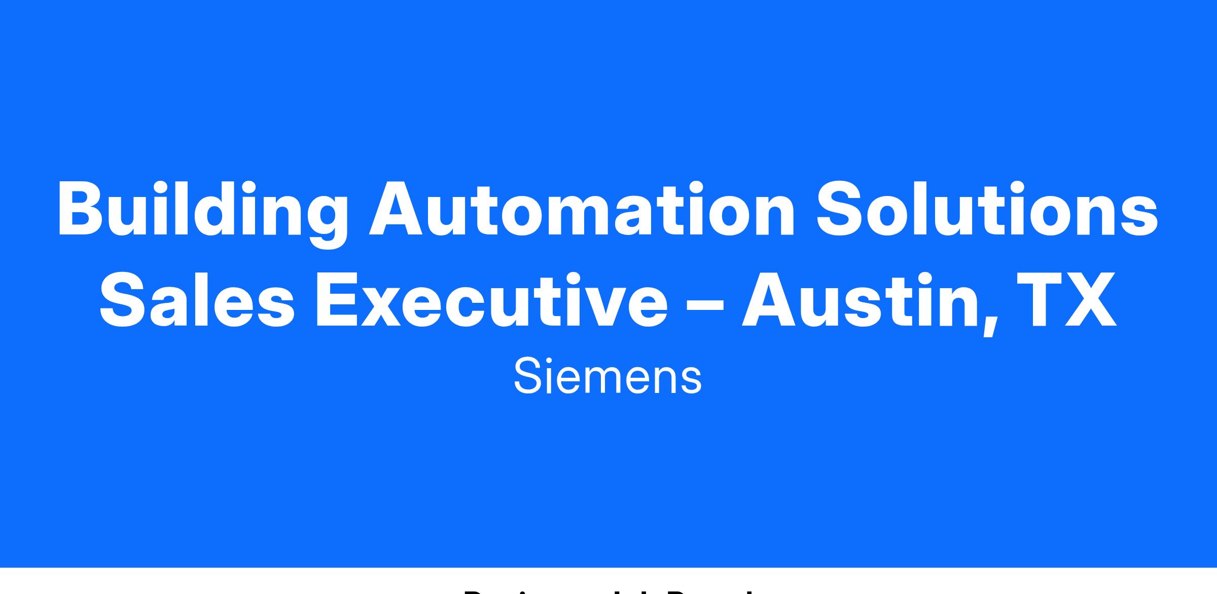The Solutions Sales Executive is committed to supporting our new construction business within our commercial Smart Buildings Automation Controls Solutions team. Our Solutions Sales team will achieve booking and profit goals by developing and implementing plans to grow, develop, and manage contractor, consultant, developer, and end-user relationships; capitalize on sales opportunities within the territory; and effectively execute sophisticated deals independently within our established guidelines. Why is this so important? Our Sales Executives are ambassadors of quality Siemens technology, products and services, and your expertise and regular interaction with the customers will help them optimize and facilitate a safe, emergency-ready workplace.