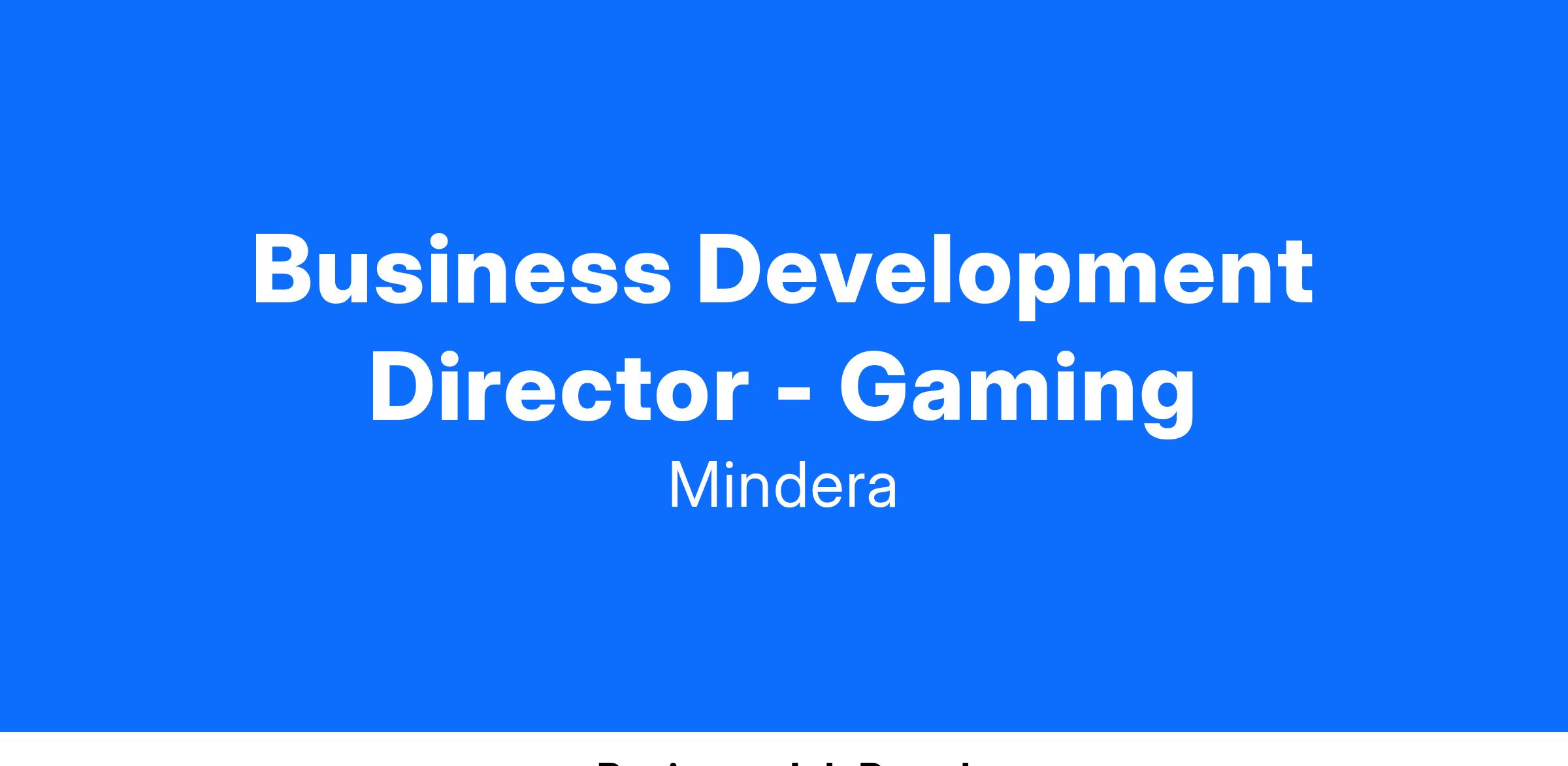Mindera is looking to recruit a Business Development Director, with recent experience in a gaming company or domain to create a strategy for business development in collaboration with peers. In this role you will work closely with Mindera business and vertical owners from around the world to build out the top of the funnel and support new clients with pitches and RFP responses.