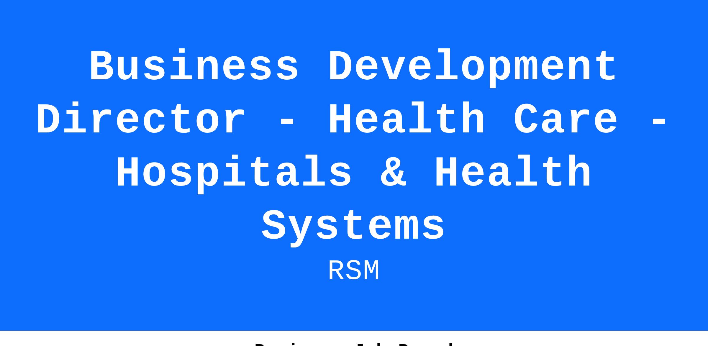 RSM's growing Health Care team is looking to add a dynamic Business Development Director in key markets accross the U.S. The Business Development Director will be responsible for driving growth of the firm's professional services within Hospitals & Health Systems and will represent all services provided by our three primary functional areas, audit, tax, and consulting.