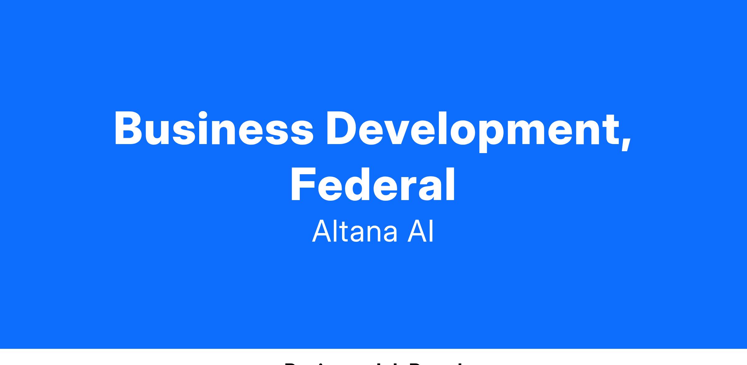 The Federal Business Development team is looking for an innovative and dynamic professional who will have the opportunity to establish and maintain productive relationships between Altana and several U.S. Federal entities. This person will play a vital role in shaping and winning new deals, fostering collaboration, understanding government needs, and aligning our solutions with their mission-driven objectives. This individual’s strategic approach and expertise in navigating the public sector landscape will contribute to the overall success of not only the sales team, but Altana at large.
