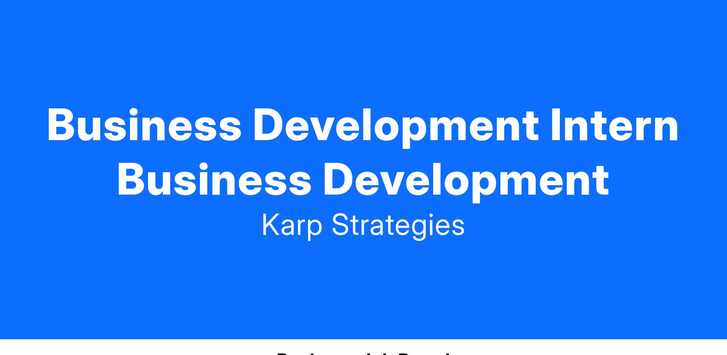 This role includes working with a wide range of diverse internal and external stakeholders to represent Karp Strategies’ unique capabilities and branding, supporting the development of our proposal materials, and communicating with a diverse range of audiences engaged in urban planning and economic development.The BD intern will report to Senior Associate, Business Development. This role will also work closely with the CEO, Leadership Team, Marketing Team, and Project facing staff.