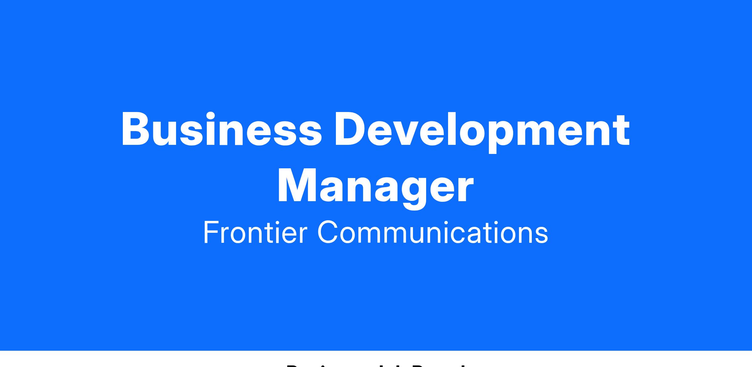You will be charged with securing contracts with Frontier’s multifamily clients to expand the reach and penetration of our FiberOptic Internet services. You will target property owners, operators and developers to build and cultivate a pipeline of multifamily communities that range in size from individual several-hundred unit properties to large multi-site portfolios over 10,000 units in size. In this in-person role, you will be required to report to our Tampa, FL office to complete your work responsibilities.