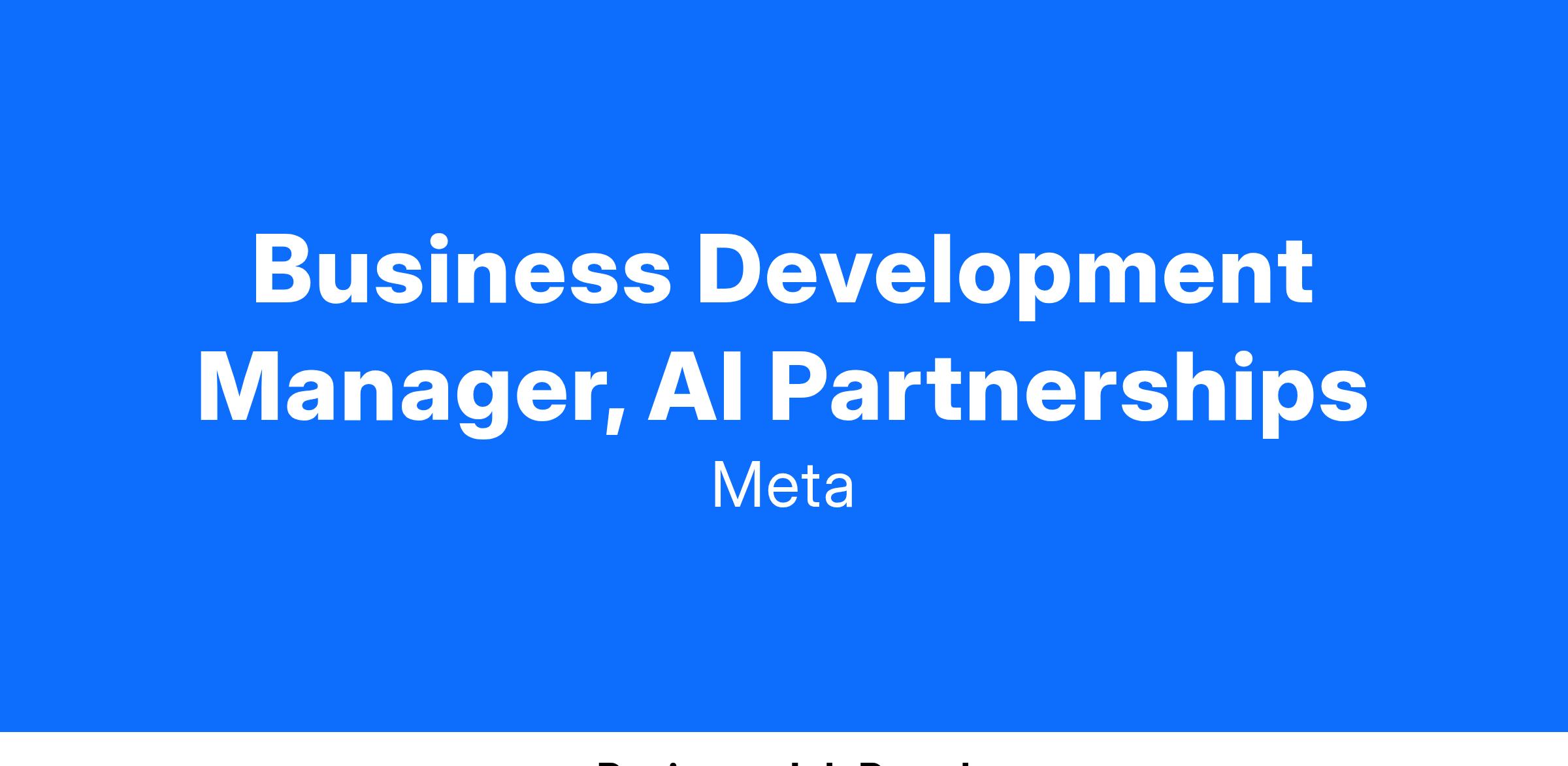 We are seeking a highly skilled and motivated Business Development Manager to join our AI Partnerships Team at Meta. The successful candidate will play a crucial role in driving global partnerships to support our cutting-edge AI products. At Meta, we have been pioneering advanced approaches to AI for over a decade. Through our open approach, we have been investing in the future of AI in collaboration with experts across the field on projects such as PyTorch, AI supercomputers, AI infrastructure, AI for accessibility, Llama 2 and more. As a Business Development Manager, you will be responsible for driving partnerships from term sheet negotiations through product launches, managing relationships, and growing, measuring, and optimizing partnership success. We are looking for a leader who will be passionate about AI and enjoy working with product teams and multiple partners. It is essential that you are comfortable navigating cross-functional teams to achieve your goals.