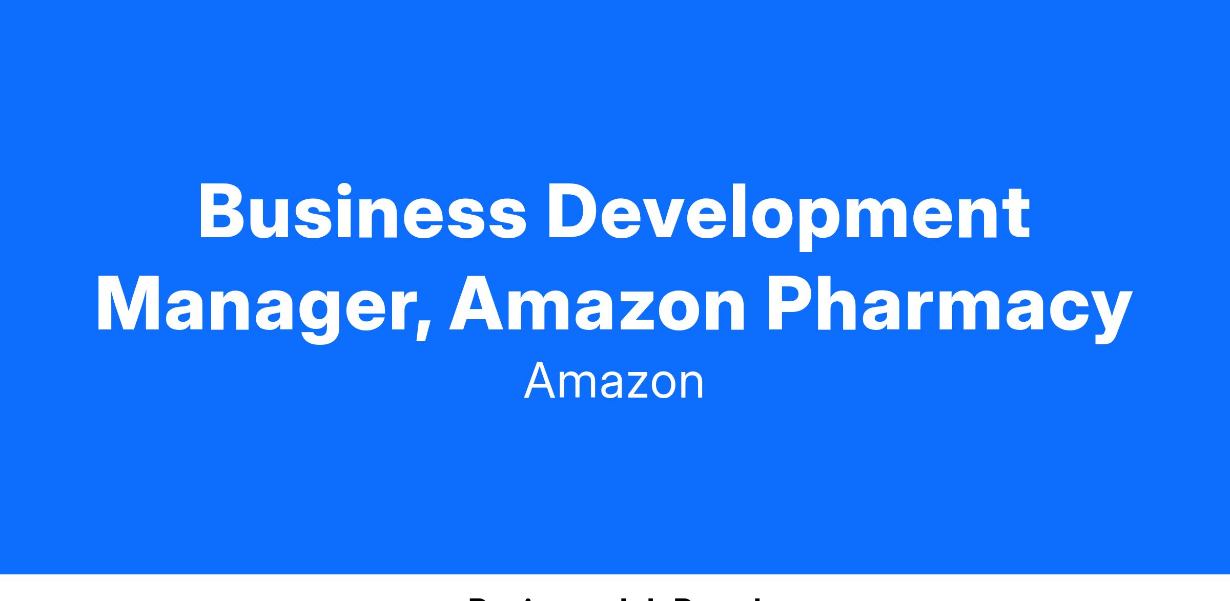 Business Development Manager, Amazon Pharmacy