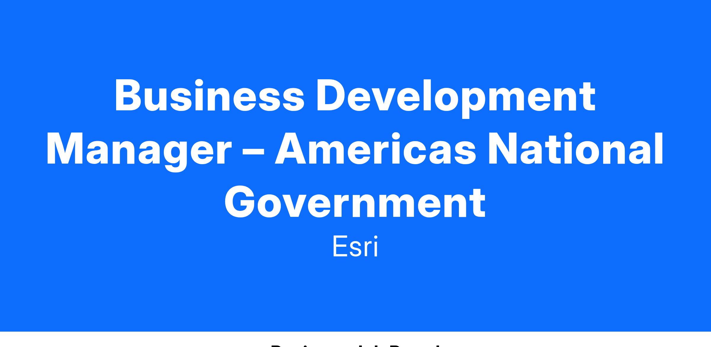At Esri, our Business Development Managers collaborate with distributors and partners to co-sell and promote the adoption of Esri technology. We invite you to utilize your enterprise sales and multi-channel software business development experience to provide geospatial software and solutions to the Latin America region’s national defense, intelligence, and public safety agencies. You’ll work closely with Esri’s distributor network to help customers optimize and expand adoption of Esri technology, identify new areas of growth, and deliver expertise that helps deliver on their mission and vision.
