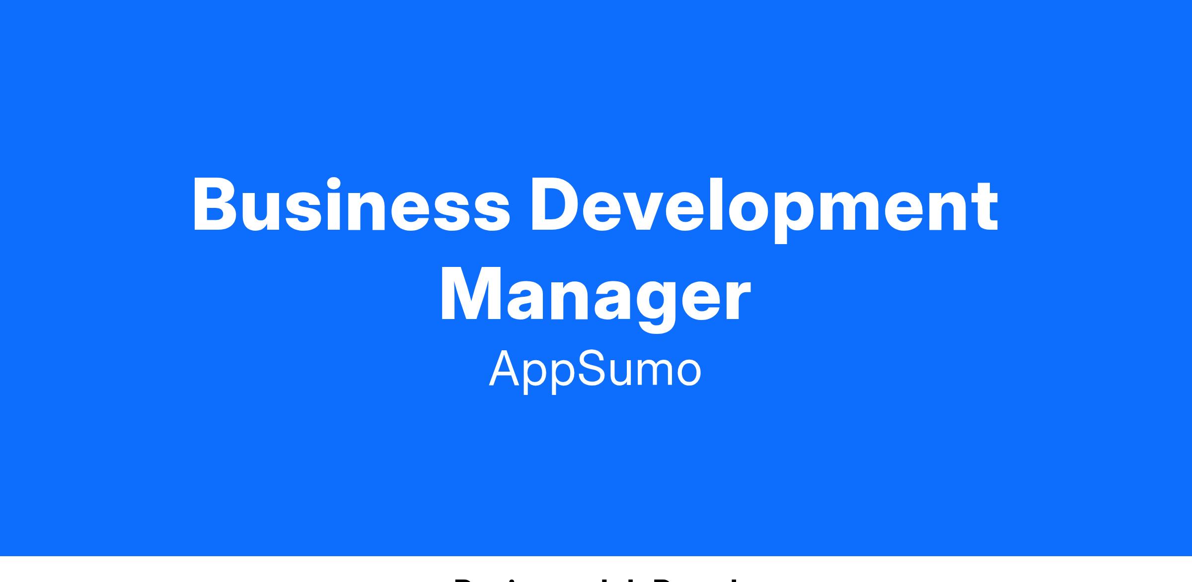 As a Business Development Manager (Account Executive), you'll be in charge of vetting software products from all over the world. You will be acting as a VC when selling and closing potential partnerships that will equally significantly benefit the partner, our customers, and AppSumo. You will be managing the full sales cycle which includes: