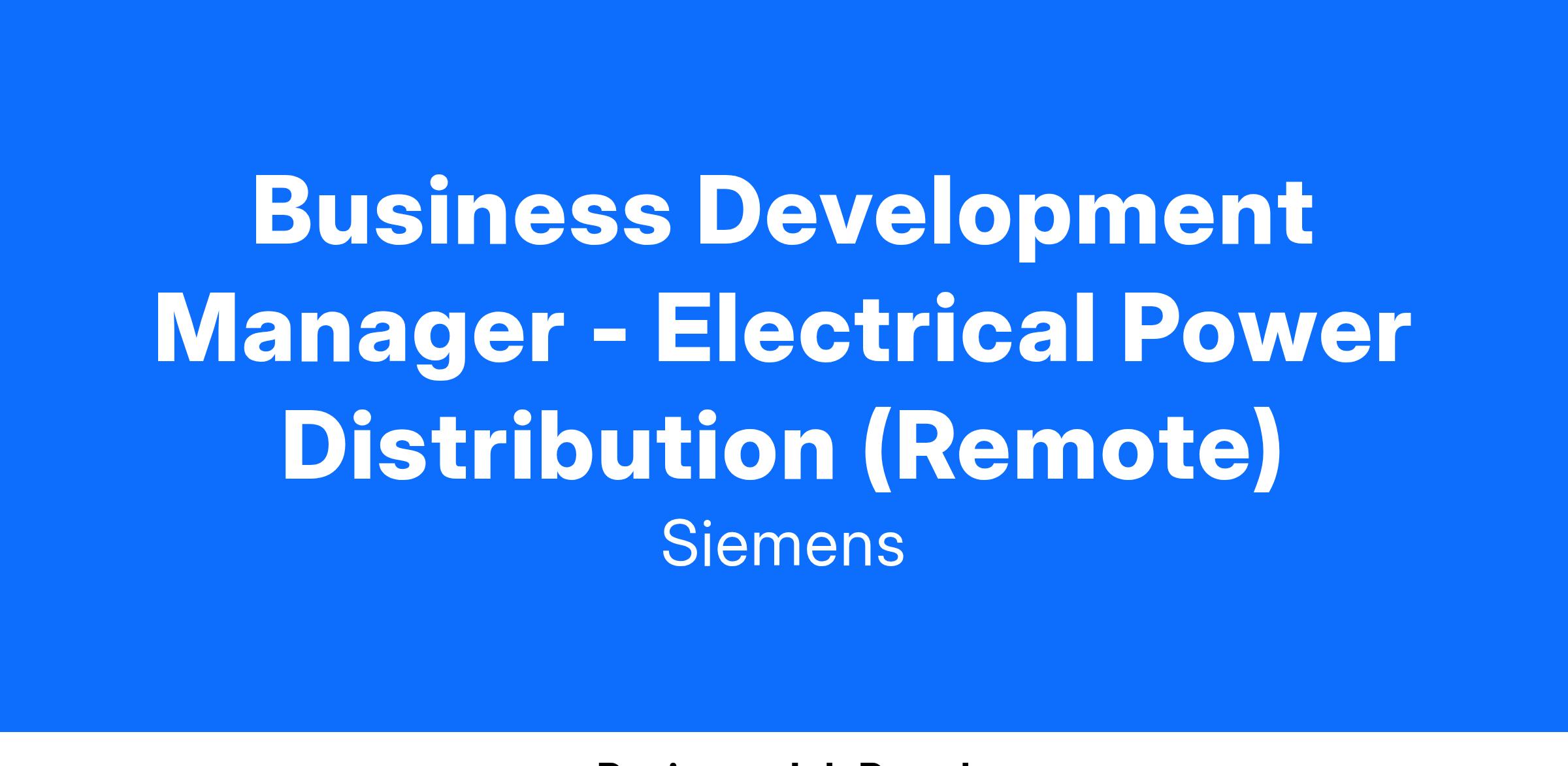 Siemens is looking for a Business Development Manager focused on the electrical power distribution market. The candidate will work with electrical power distribution end users to promote Siemens solutions and coordinate with the Siemens Sales team to succeed on target projects.