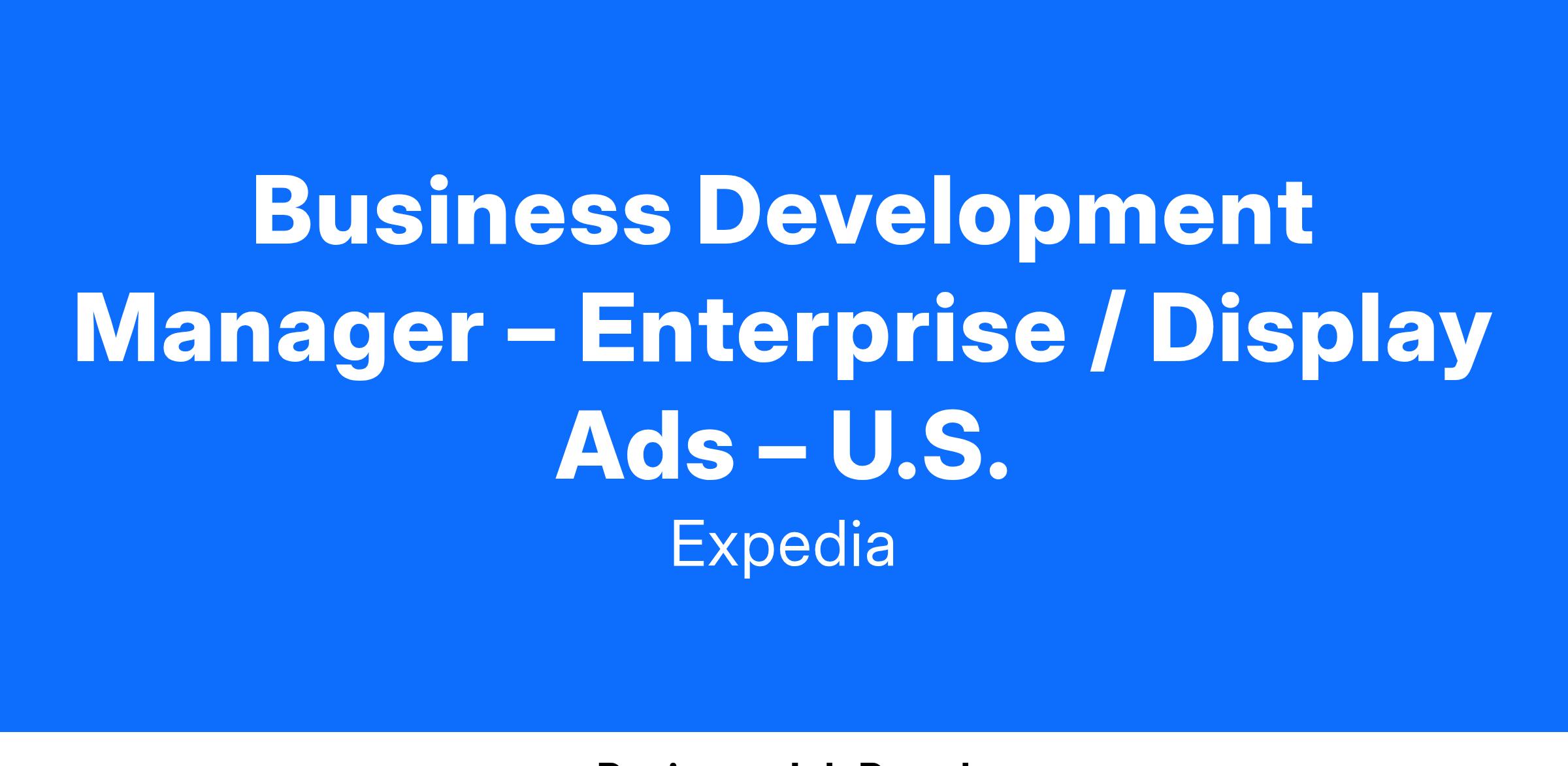 Business Development Manager – Enterprise / Display Ads – U.S.