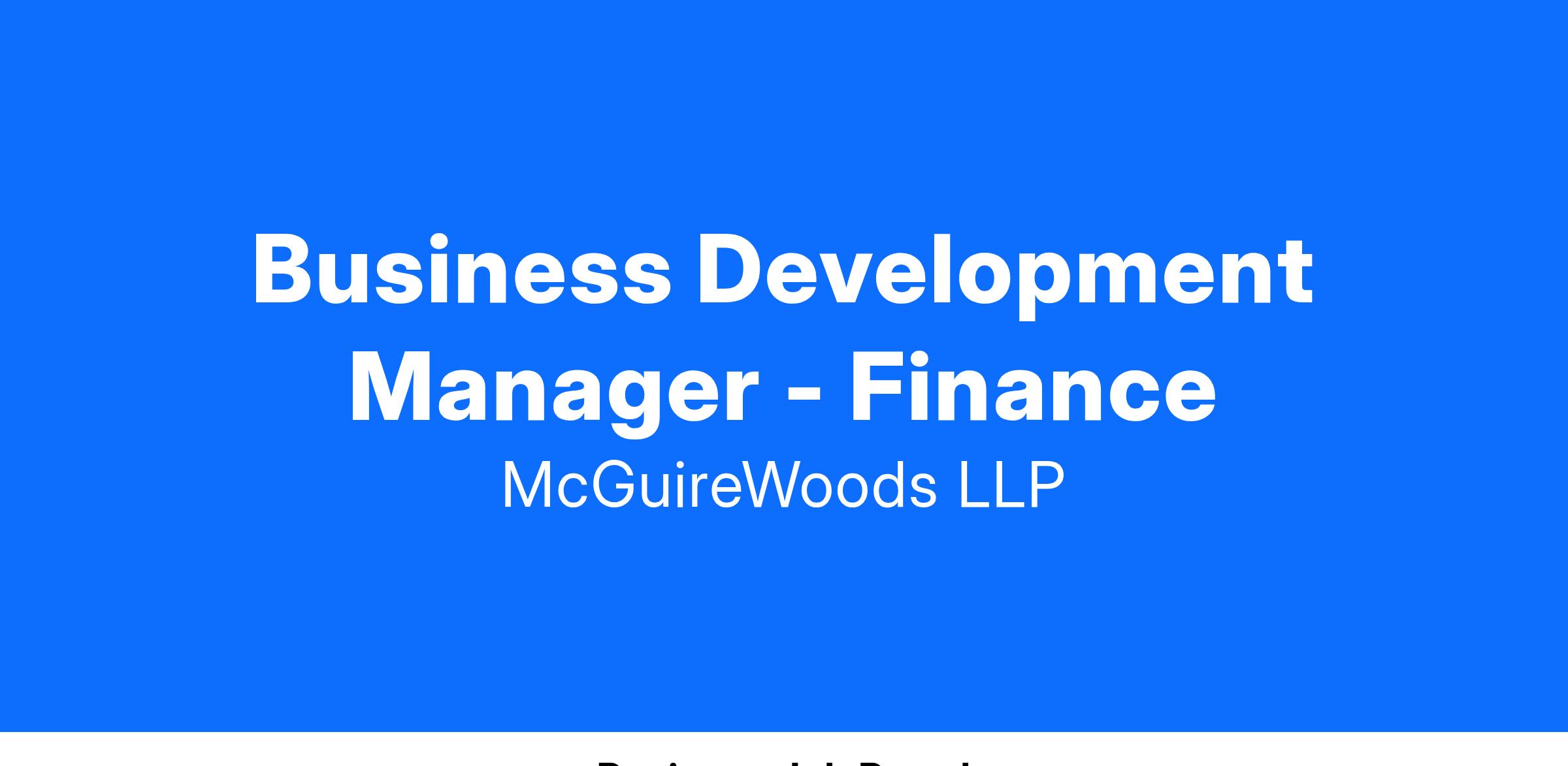 McGuireWoods has an opportunity for a self-driven leader to join its Business Development team as a Business Development Manager (BDM) in our New York, Charlotte, and Atlanta offices. This BDM role will support finance and financial institutions-focused departments, industry teams, and practice groups, including Private Credit, Syndicated Finance, and Debt Finance, to develop and execute clear strategies and business plans utilizing a wide range of marketing functions. The BDM serves as the primary point person to facilitate client opportunities with the lawyers, develop key messaging for better positioning in the market, and collaborate across departmental and geographic lines to identify leading revenue-generating opportunities.