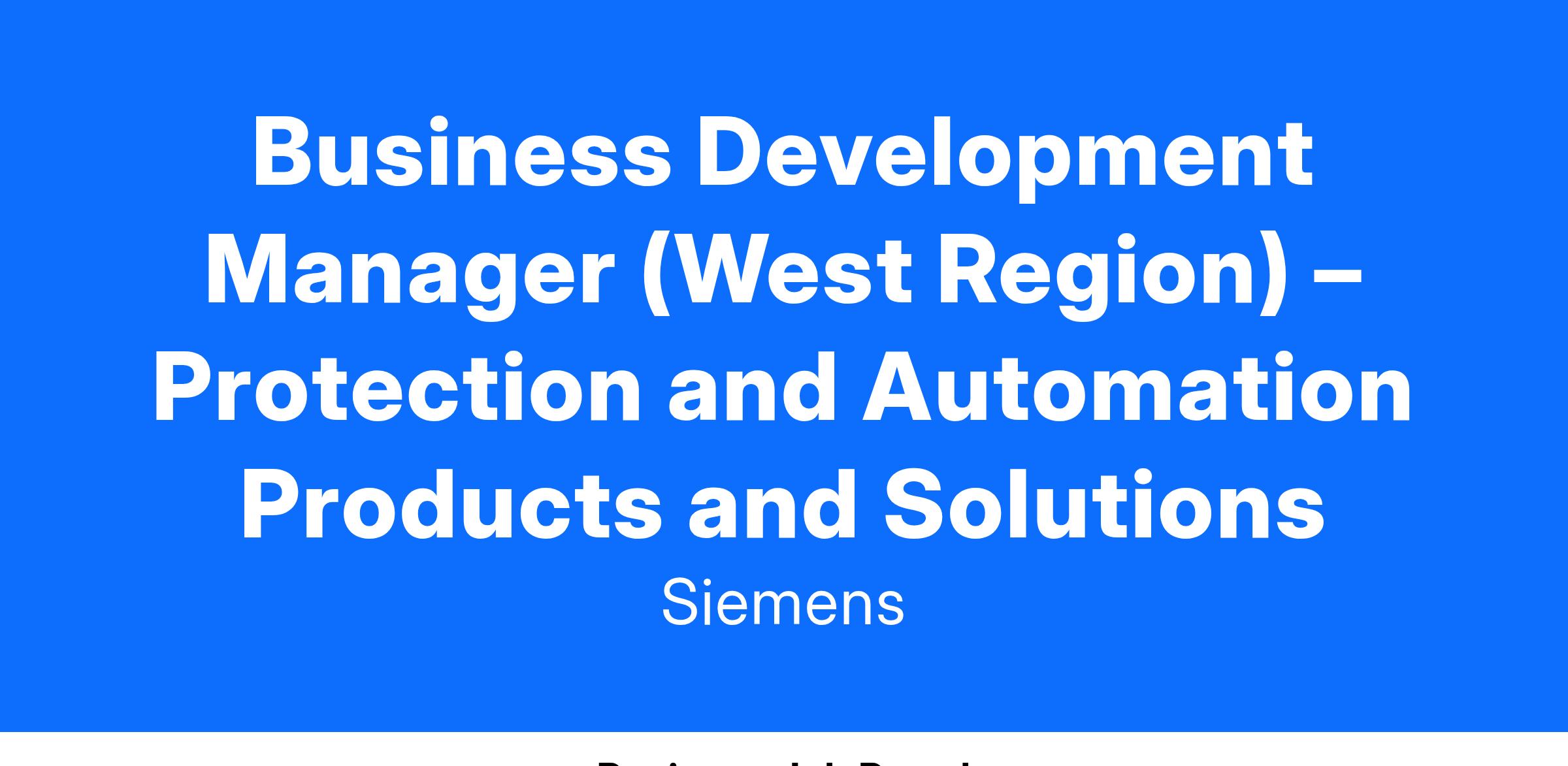 Business Development Manager – Protection and Automation Products and Solutions