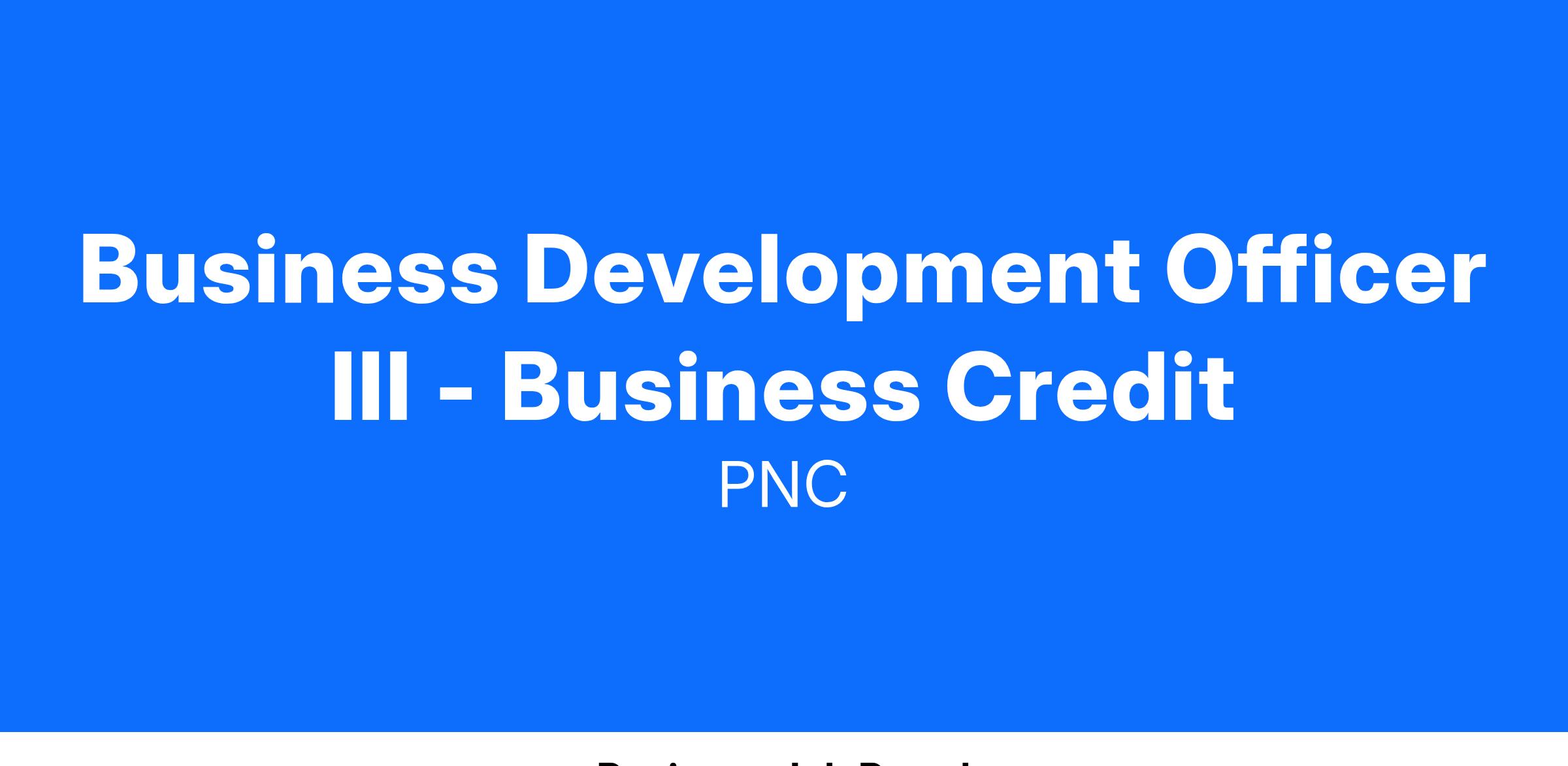 At PNC, our people are our greatest differentiator and competitive advantage in the markets we serve. We are all united in delivering the best experience for our customers. We work together each day to foster an inclusive workplace culture where all of our employees feel respected, valued and have an opportunity to contribute to the company’s success. As a Business Development Officer III within PNC's Business Credit organization, you will be based in Cincinnati, OH or Columbus, OH.