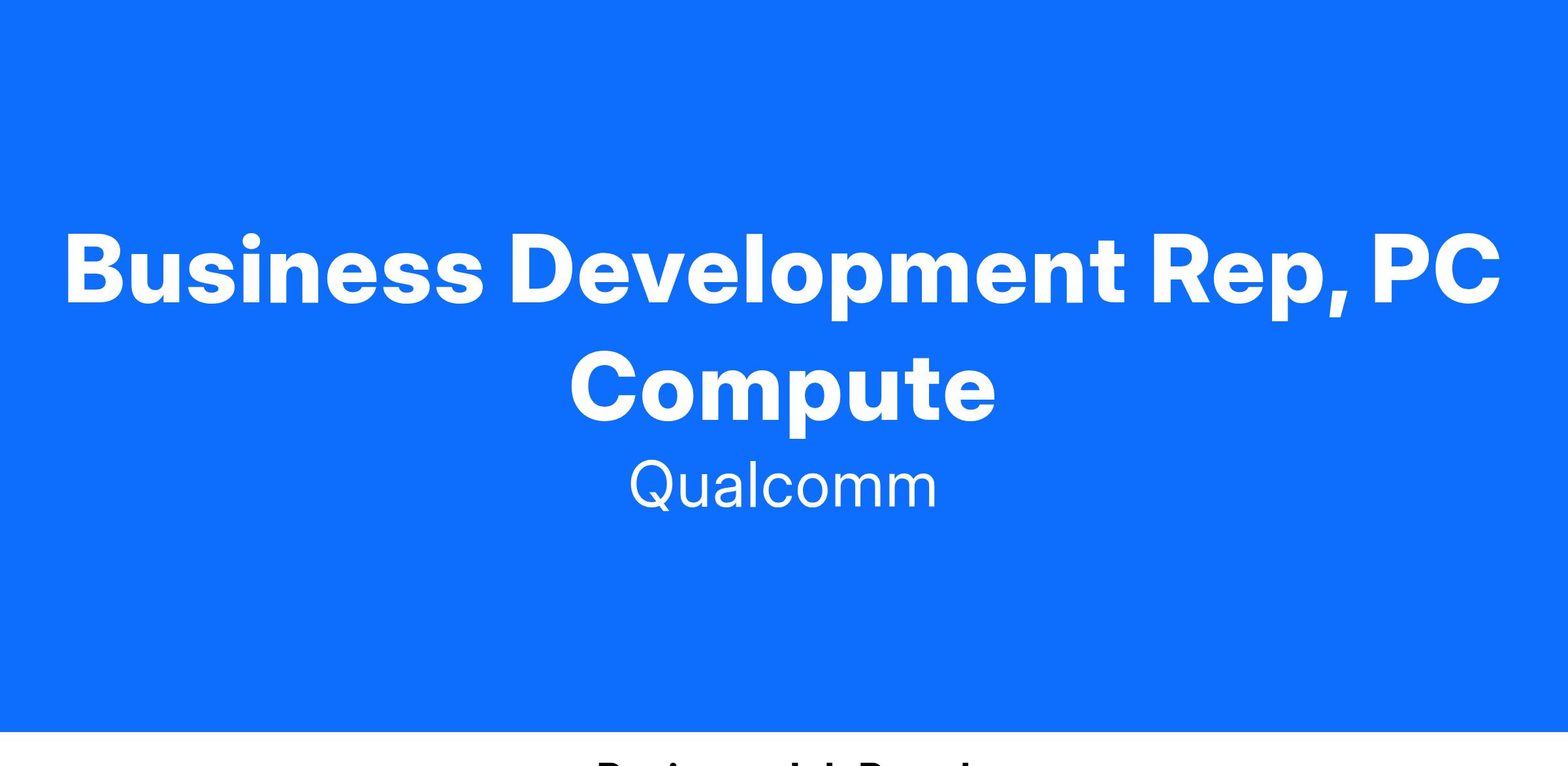 Qualcomm is a company of inventors that unlocked 5G ushering in an age of rapid acceleration in connectivity and new possibilities that will transform industries, create jobs, and enrich lives. But this is just the beginning. It takes inventive minds with diverse skills, backgrounds, and cultures to transform 5Gs potential into world-changing technologies and products. This is the Invention Age, and this is where you come in. You will be part of a strategic sales group working to disrupt the traditional compute industry to bring new and meaningful experiences to customers around the world. The Partner Development Rep will be responsible for driving net new pipeline to help grow our Snapdragon Compute device sales through commercial channel partners. The role will report to the Channel Account Sales Leader and will cover a specified group of partners in the US and/or Canada. In addition to identifying new pipeline, this person will also partner closely with channel partner sales teams to support customer conversations, deliver sales trainings, and inform the overall account sales strategy.