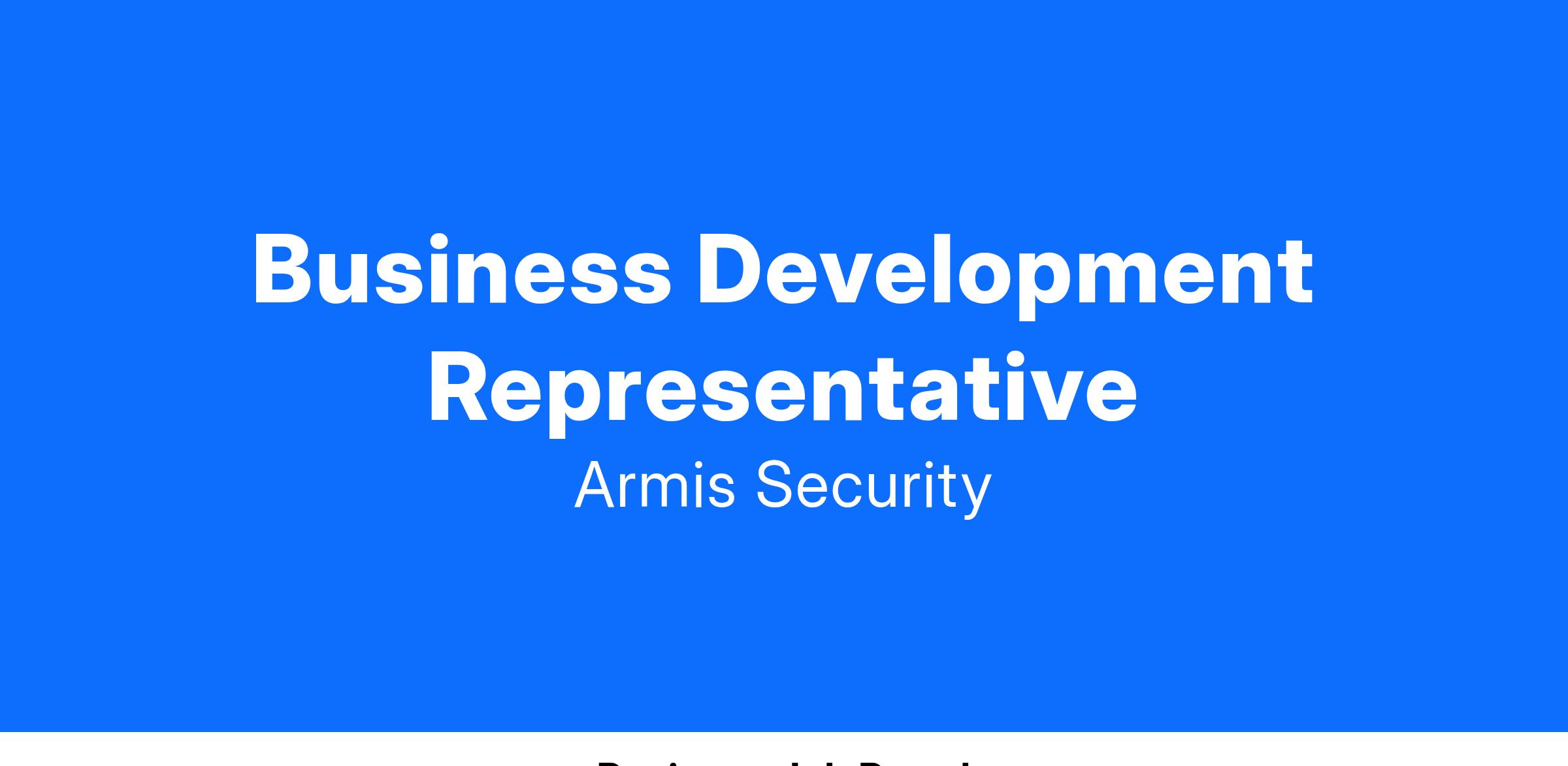 If you embody the following attributes, then the Armis BDR role is the right role for you!