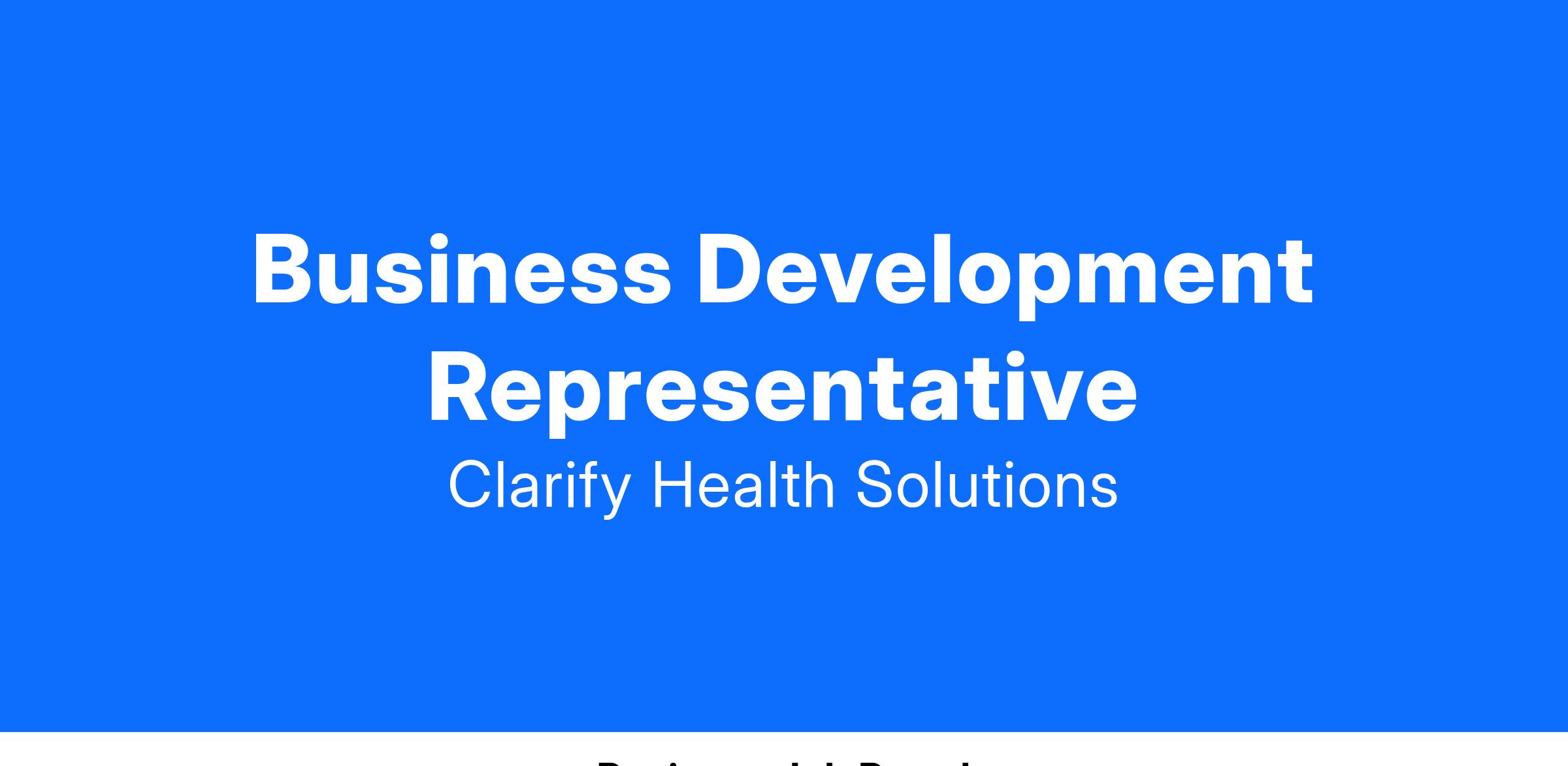 - We are always looking for new team members who will add to our culture and have a strong passion for impact. In particular, the Business Development Representative will have: